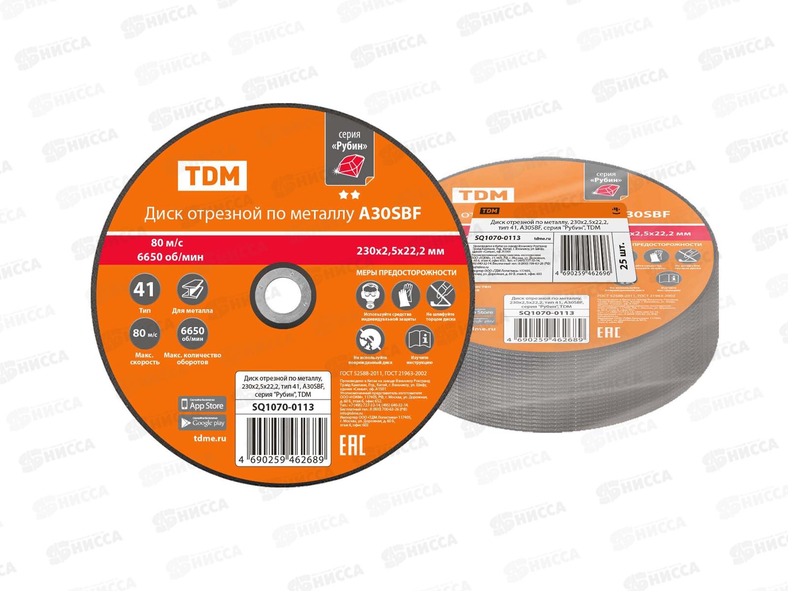 Диск отрезной по металлу, 230х2,5х22,2, тип 41, A30SBF, TDM