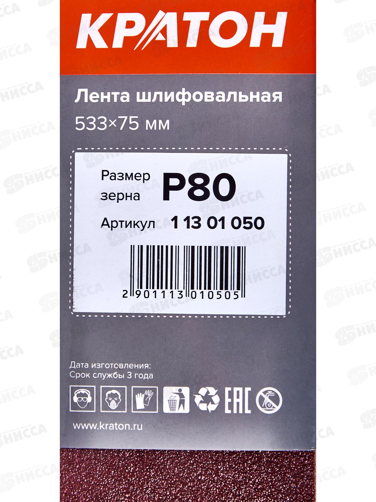 Лента шлифовальная Кратон 533х75мм Р80 набор 3шт