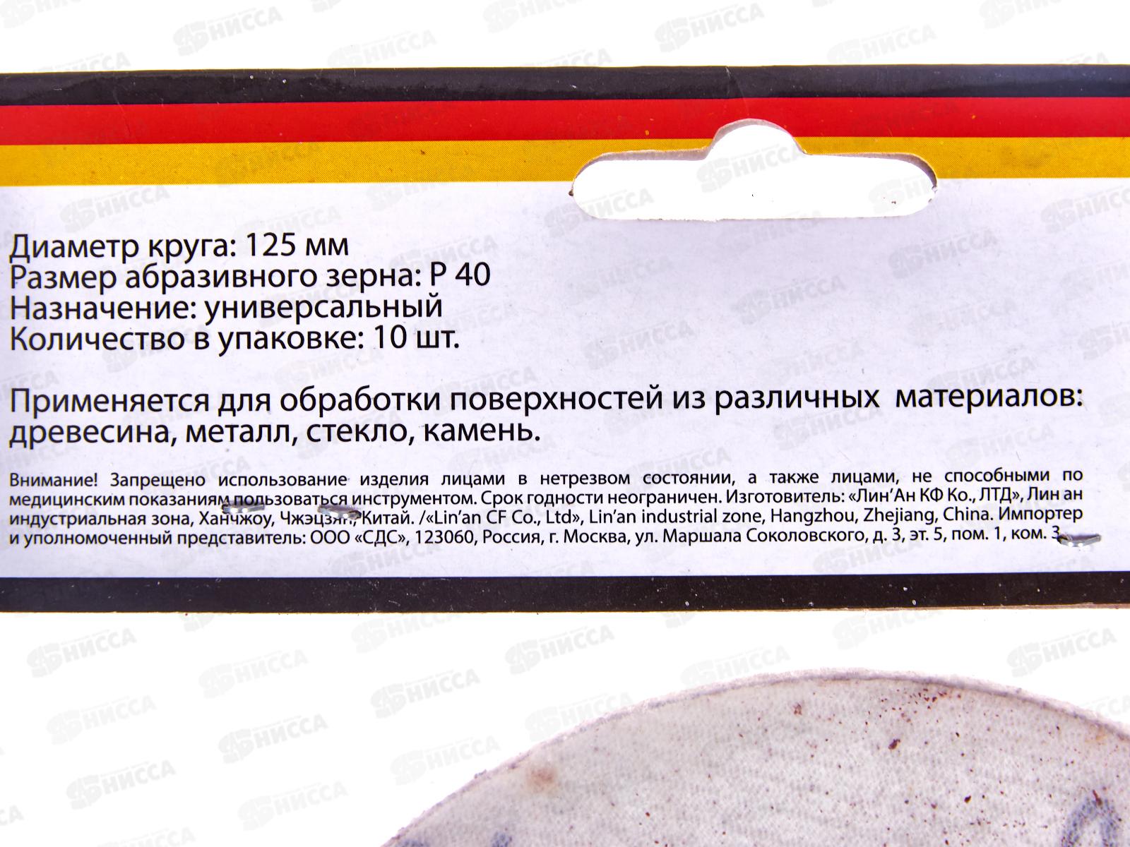Диск абразивный на ворсовой основе, на липучке, без отверстий, P40, 125мм, 10 шт. KRANZ, KR-91-1144
