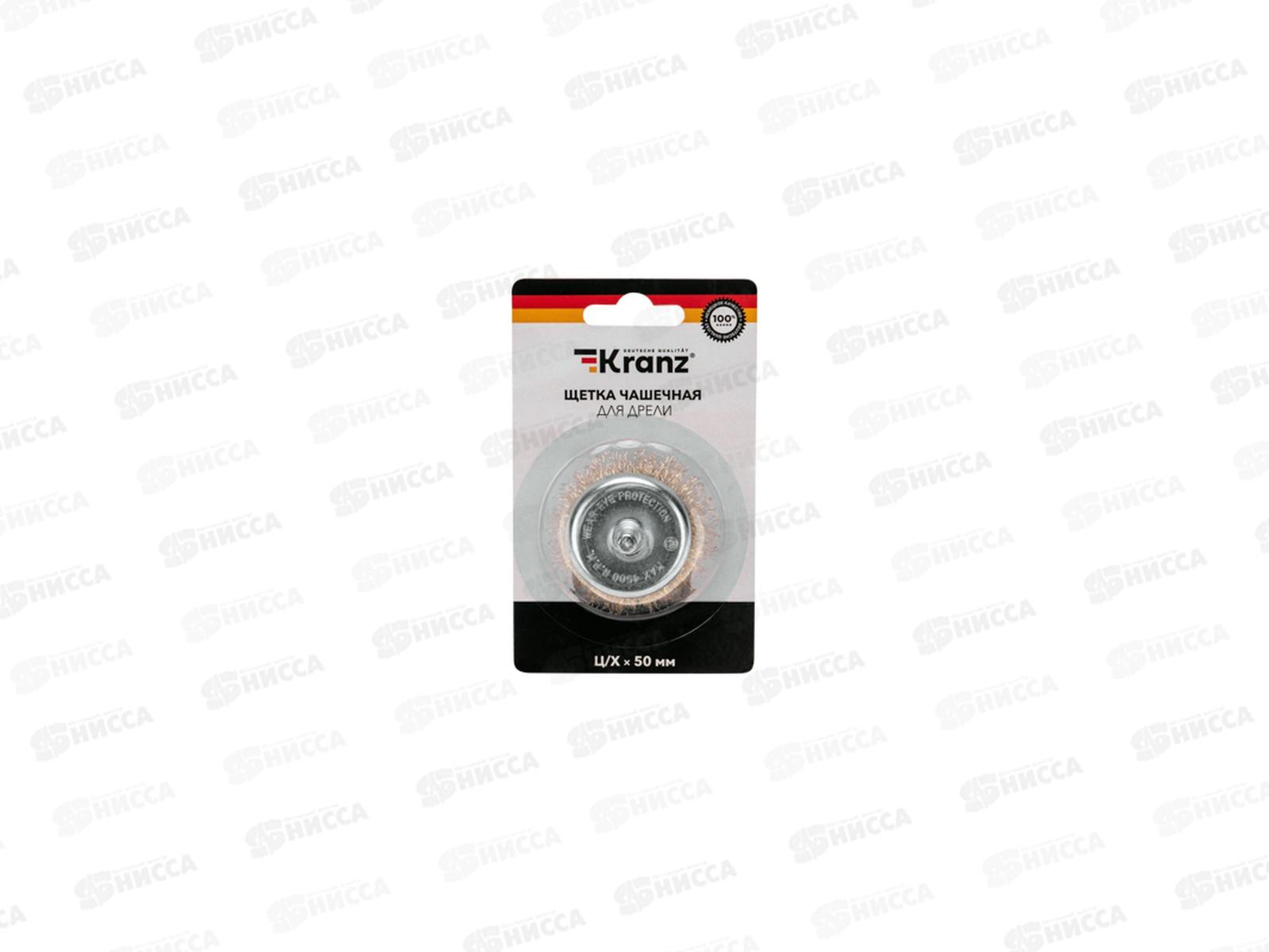 Щетка чашечная для дрели, витая латунированная проволока, 50мм KRANZ, KR-91-1253