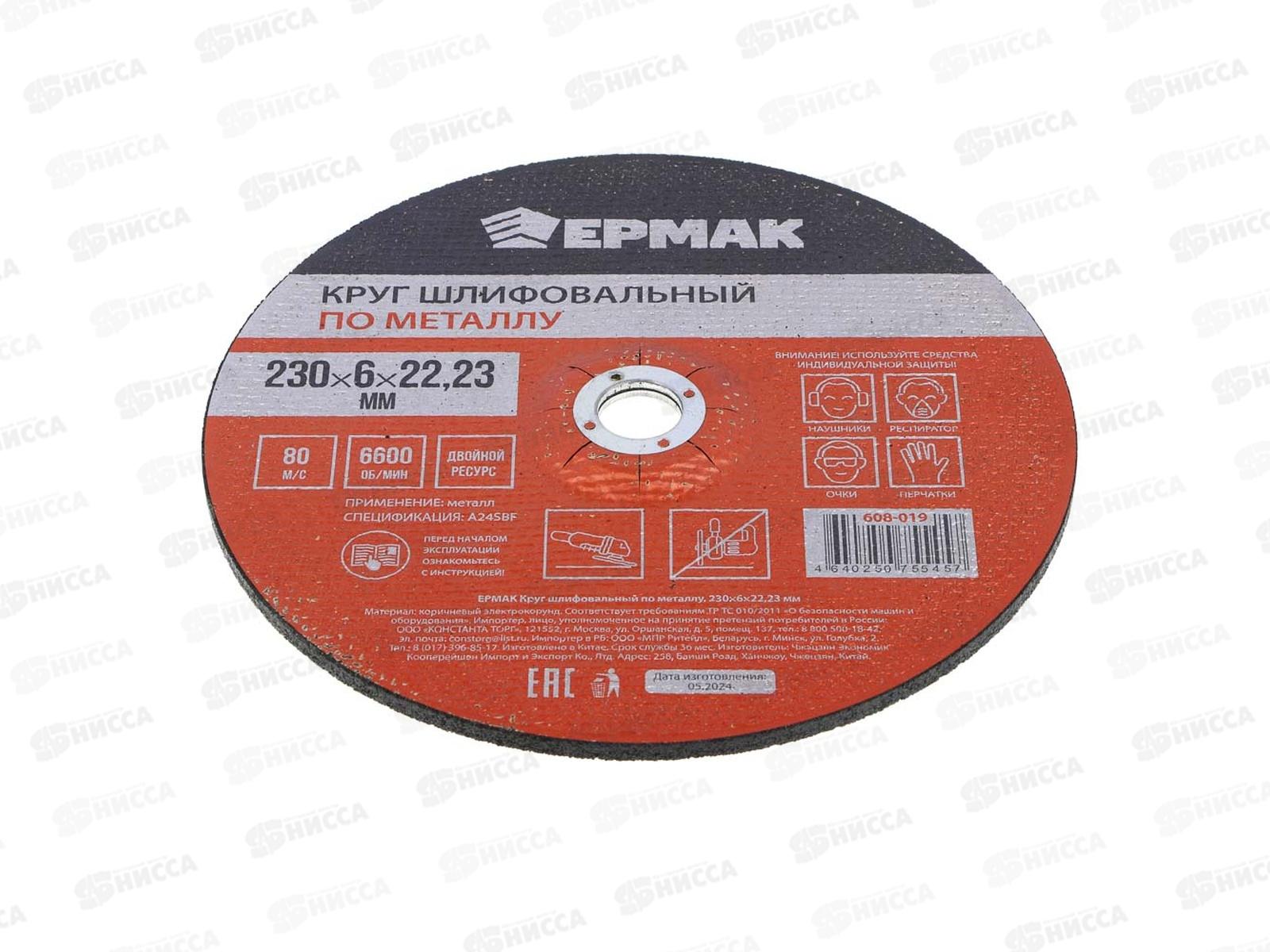Круг шлифовальный по металлу Ермак 230*6*22.23мм 608-019 г