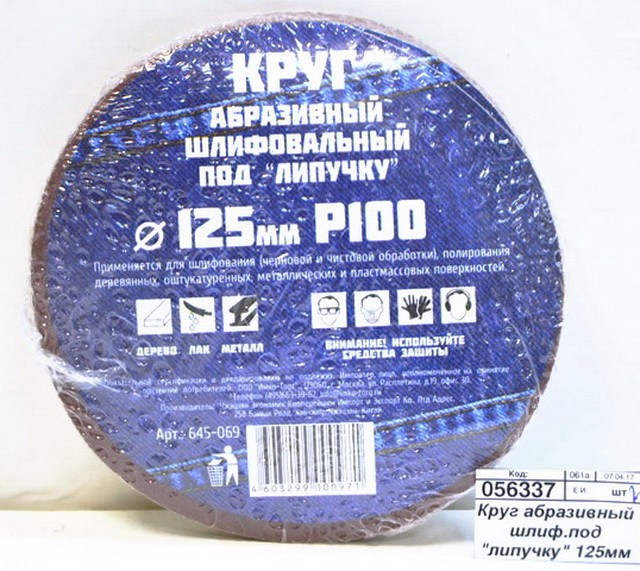 Круг абразивный шлифовальный под "липучку" 125мм Р100 10шт 645-069 г