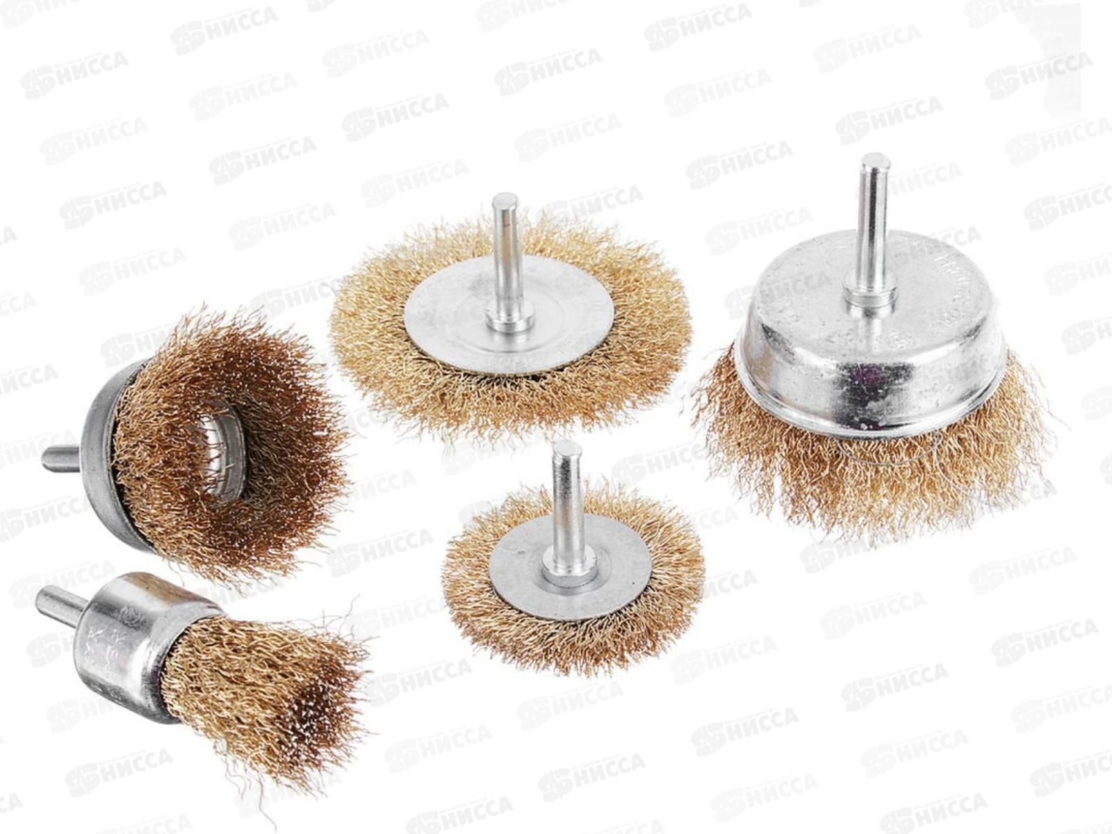 Набор щеток металлических со шпилькой 5предметов (50,75мм-пл, 25,50,75-чашки) 656-033 г