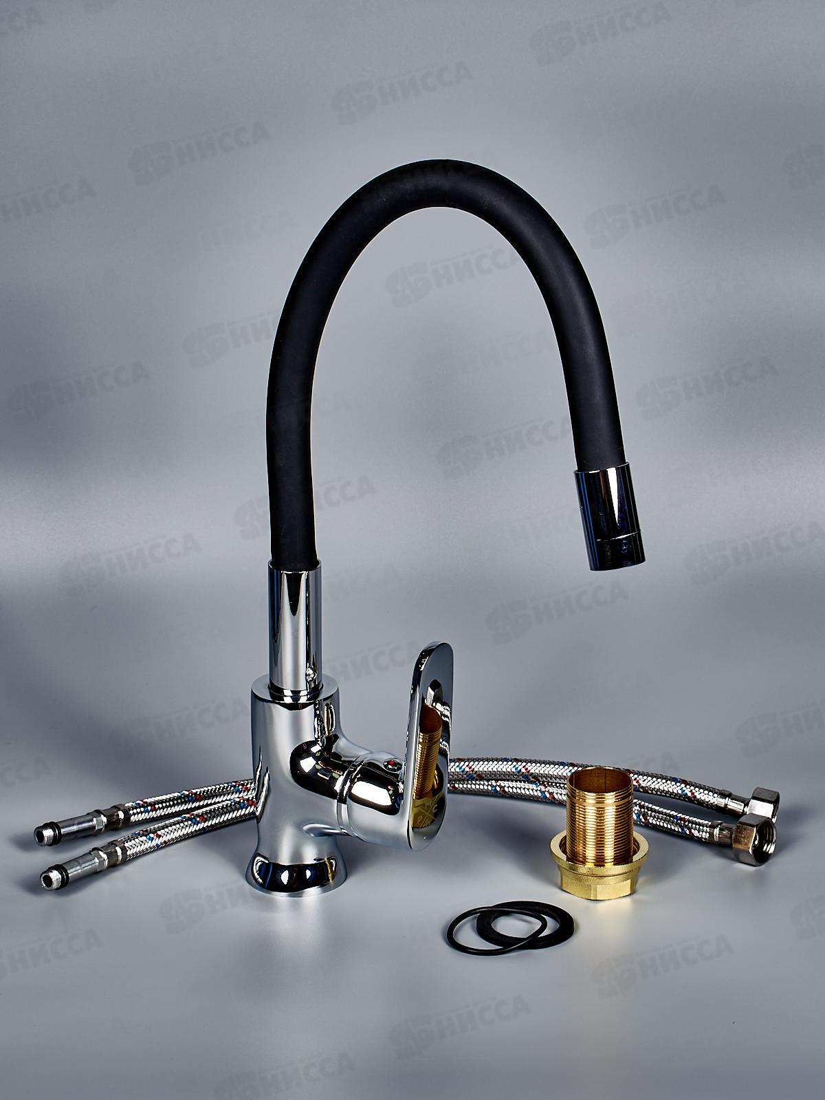 Смеситель для кухни шар., высокий гибкий излив, черный+хром, SL123BL-016F-1