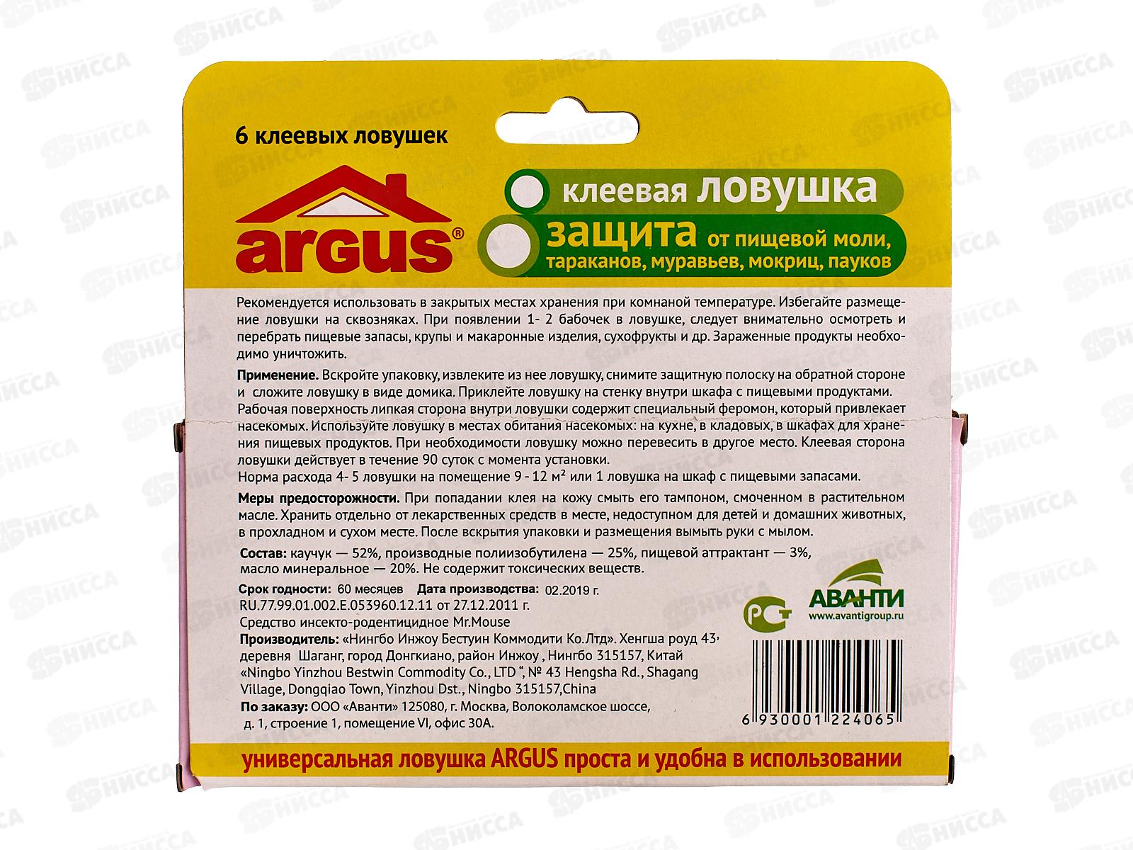 АРГУС Клеевая ловушка от пищевой моли(тараканов и муравьев) 6шт *24/144