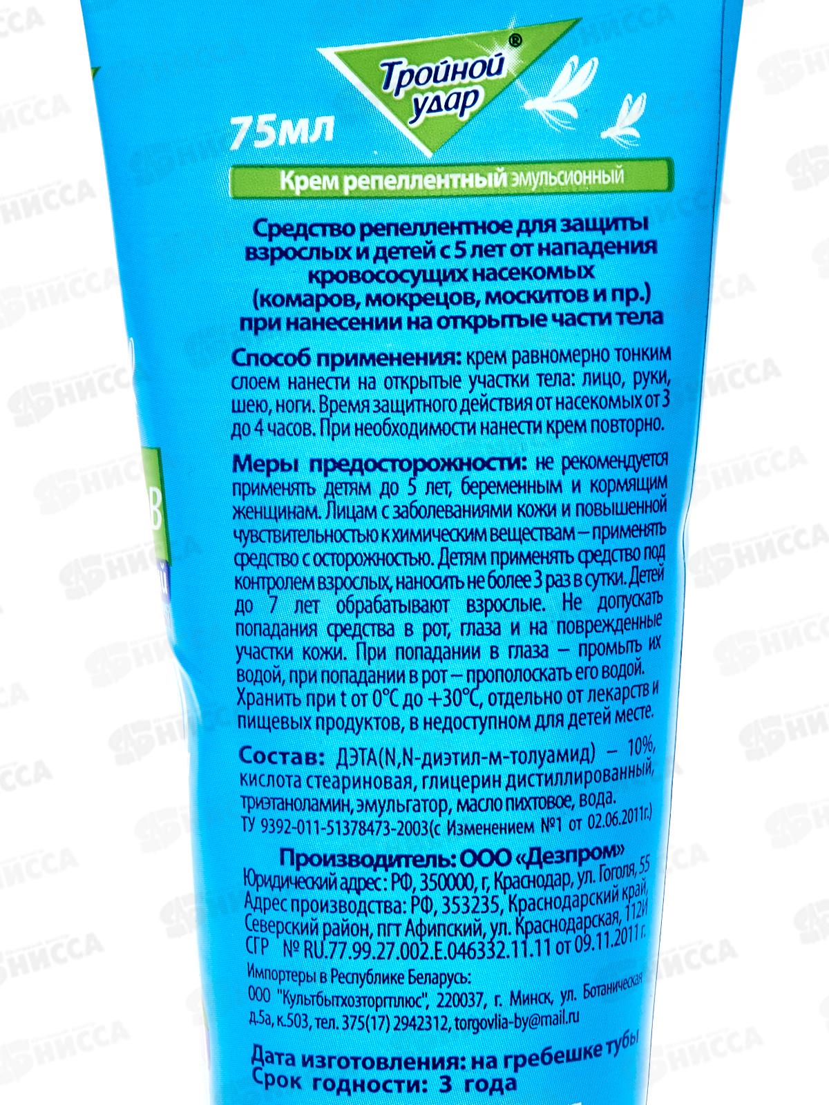 ДОМОВОЙ репеллентный крем от комаров Тройной удар 75мл *36