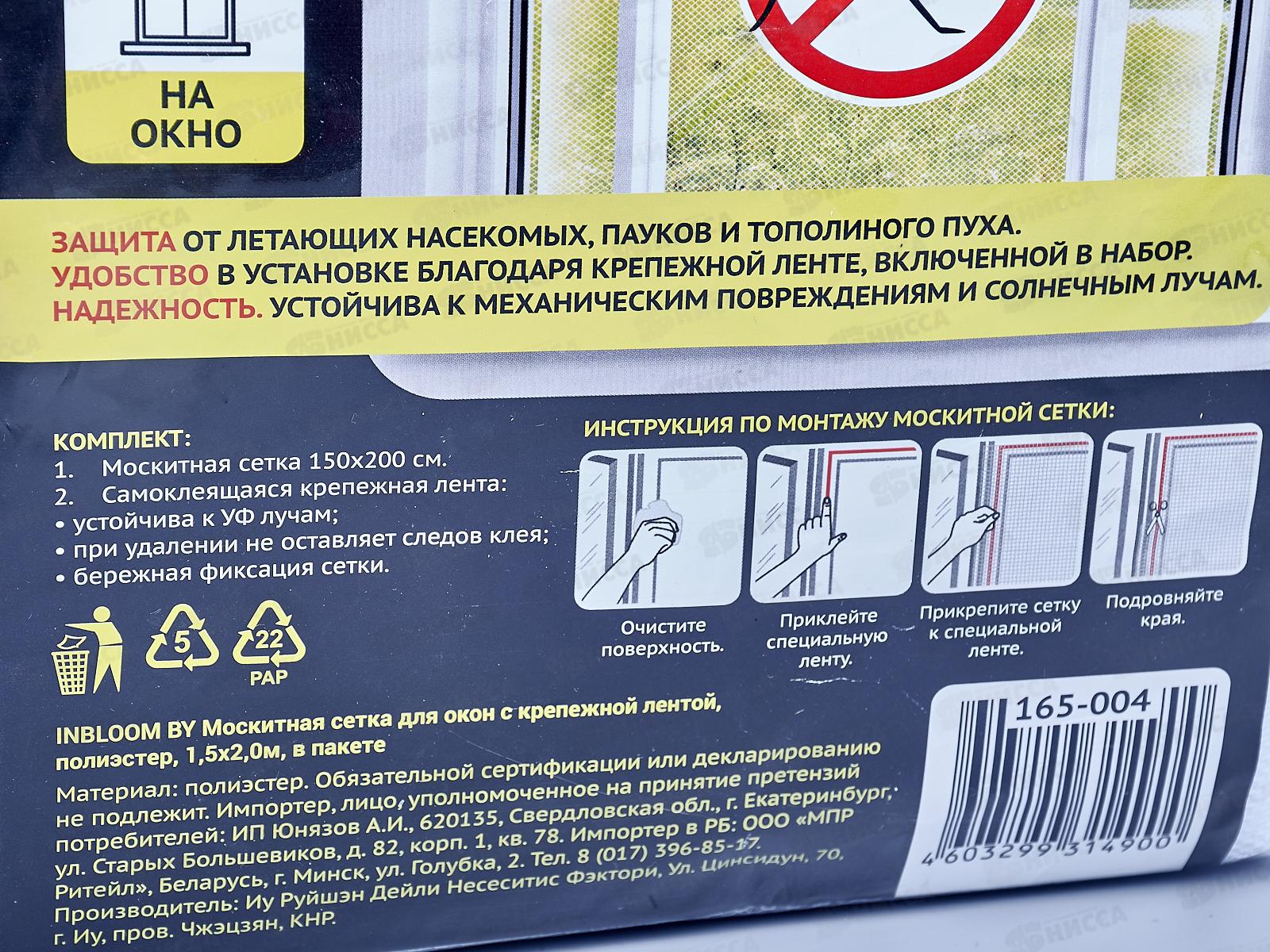 Сетка москитная для окон с крепежной лентой 1,5*2м в пакете 165-004 г*8