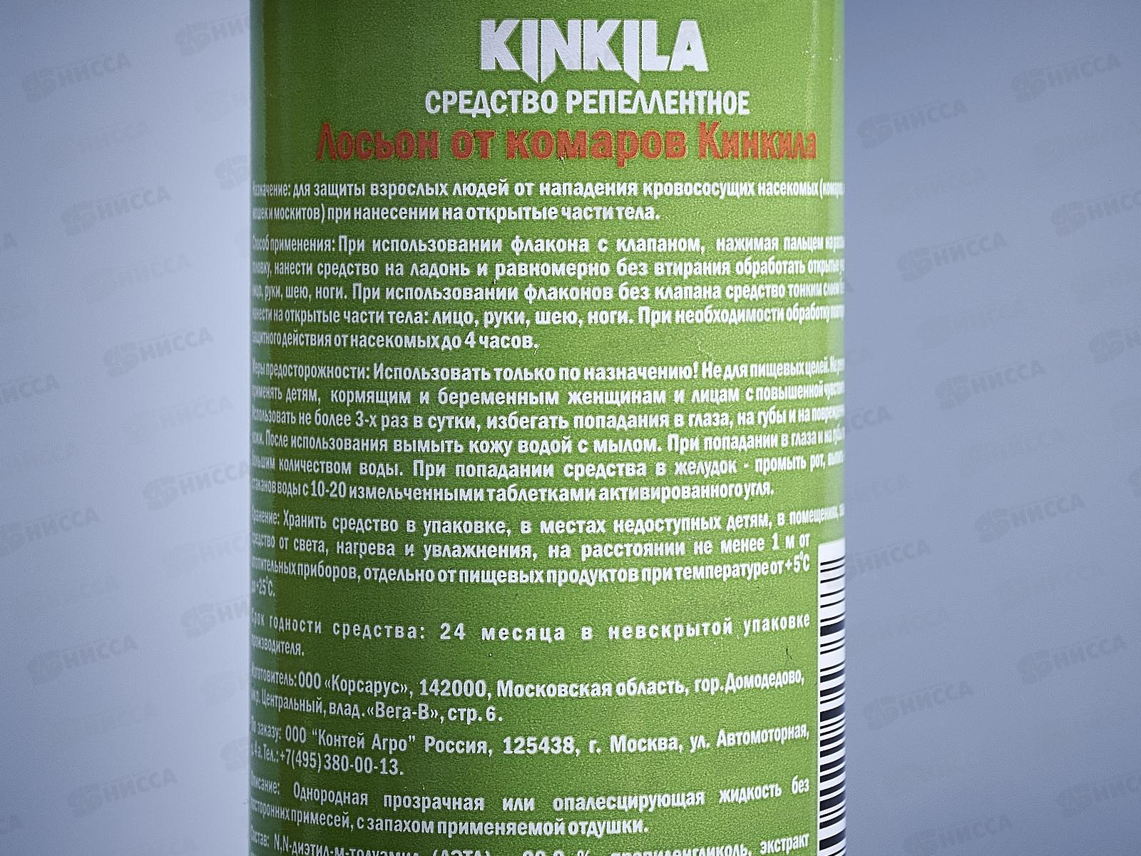 Лосьон-спрей от комаров Кинкила -высокоэффективное средство для борьбы с комарами. Предназначено для использования на открытом воздухе. Наносится на открытые участки кожаи. Благодаря качественной рецептуре, средство абсолютно безопасно для здоровья человека и домашних питомцев. Перед применением лосьон следует встряхнуть. Использовать в строго придерживаясь инструкции. Его действие длится не более 4 часов.