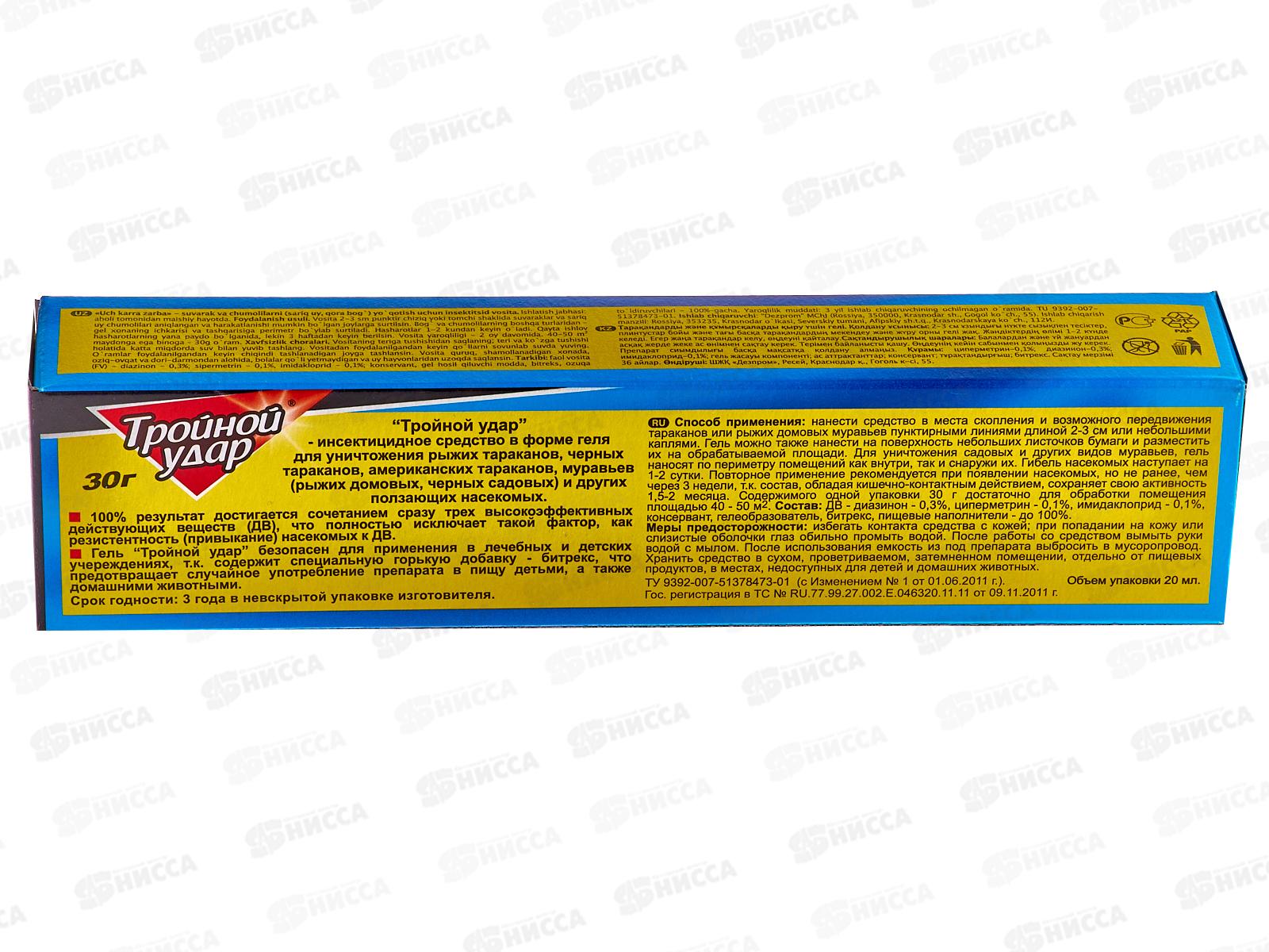 ДОМОВОЙ гель от тараканов и муравьев Тройной удар 30г *80