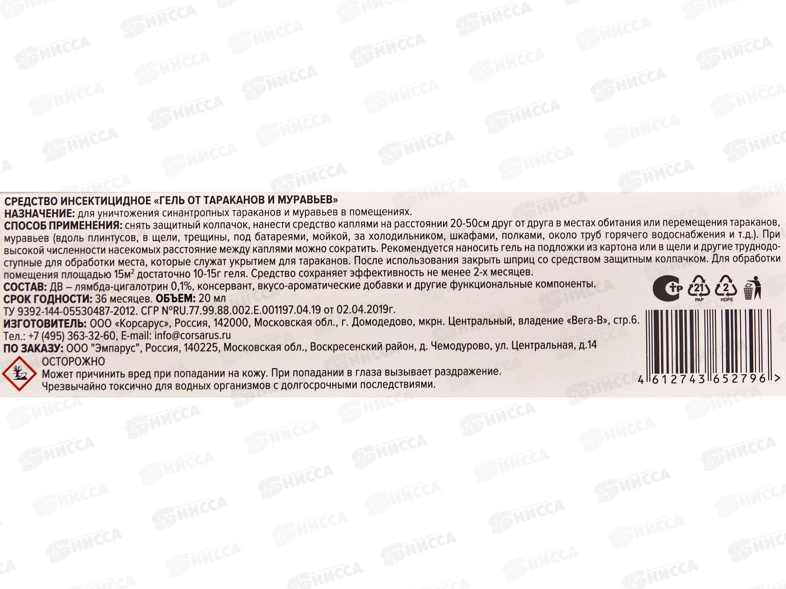 Кинкила гель от тараканов и муравьев шприц 20мл *18