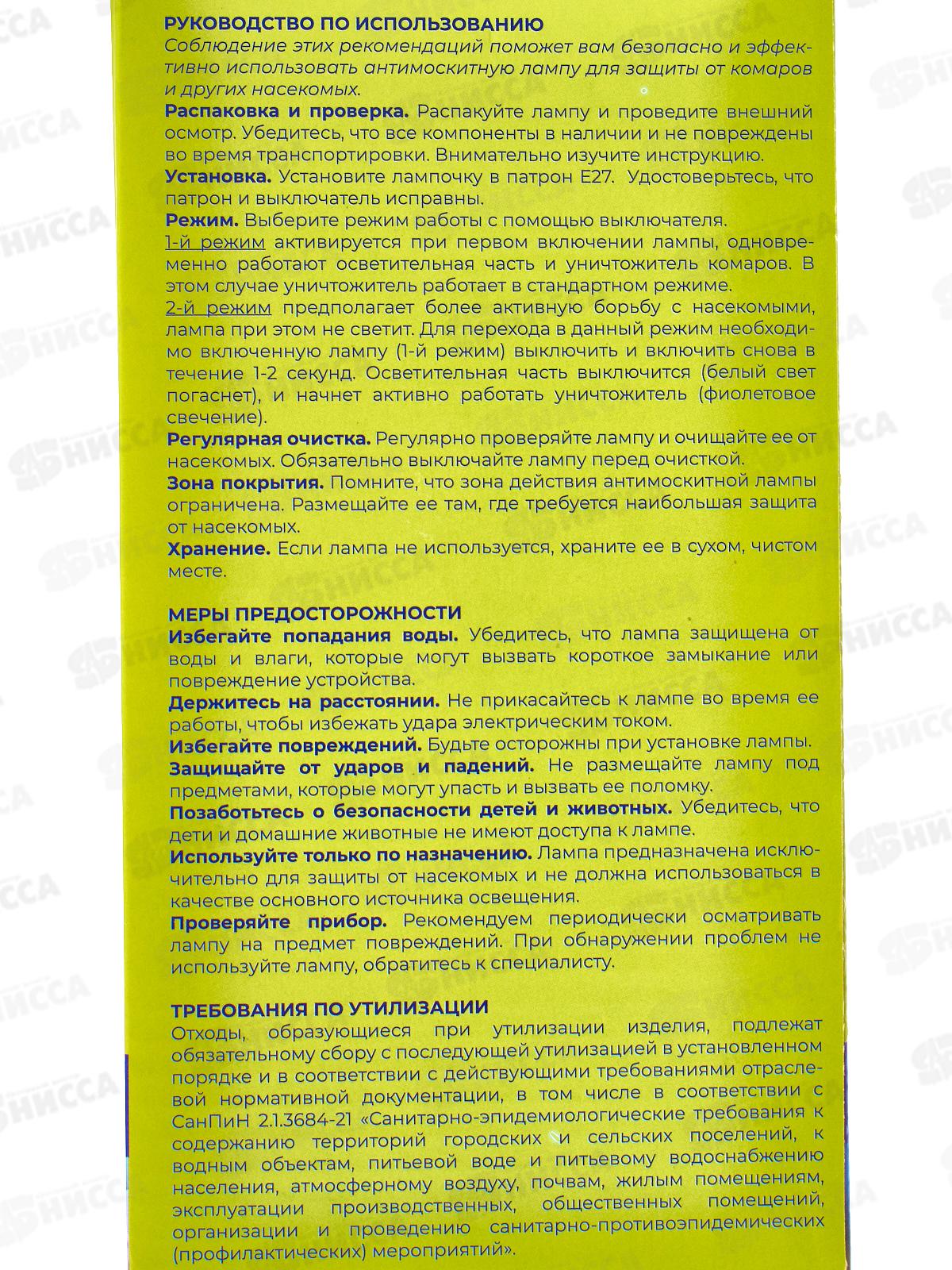 Назначение: Антимоскитная лампа