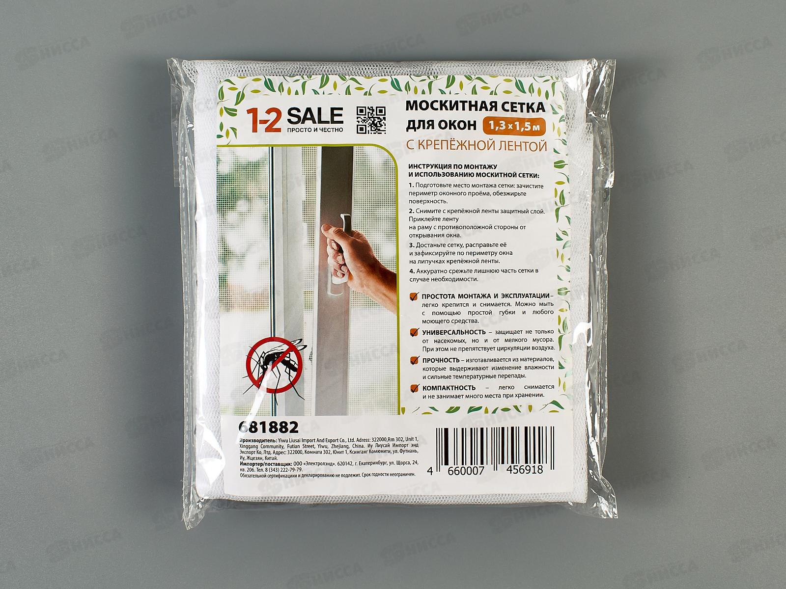 Сетка москитная д/окон с креп лентой 1,3*1,5м в/п Е1М
