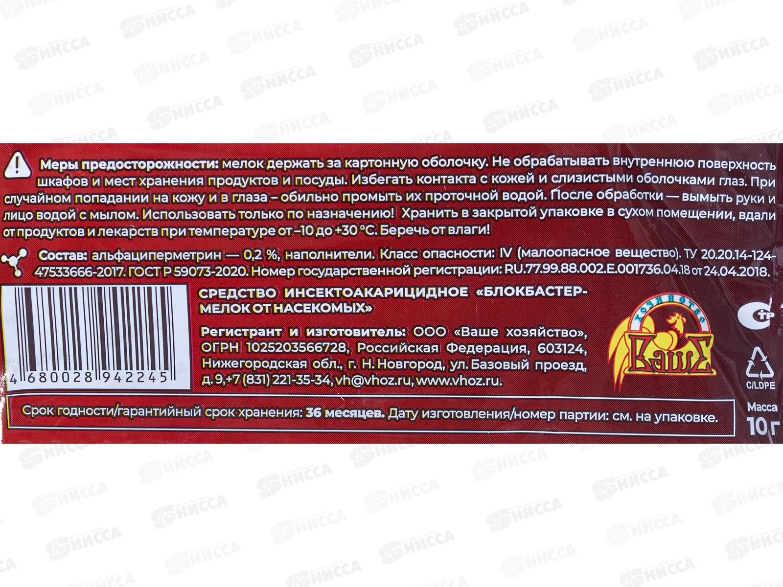 Блокбастер мелок 10г от тараканов и муравьев *100