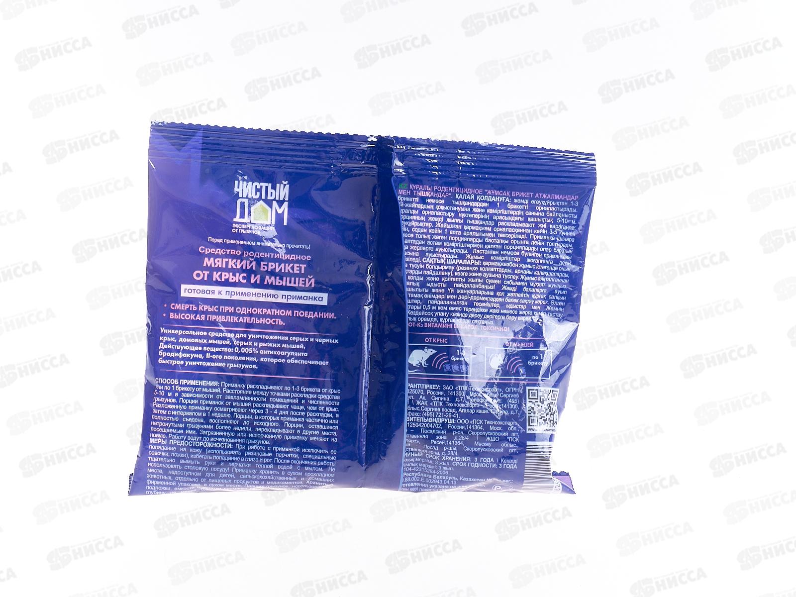 Чистый дом Тесто-Брикет от крыс в пакете 100гр *50