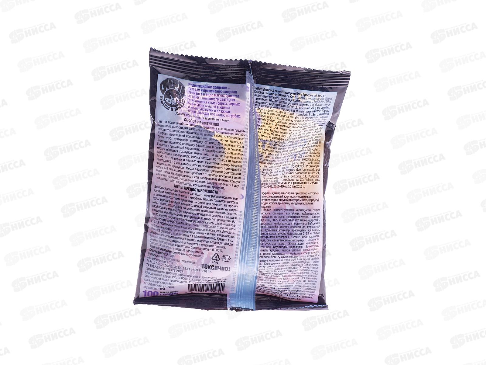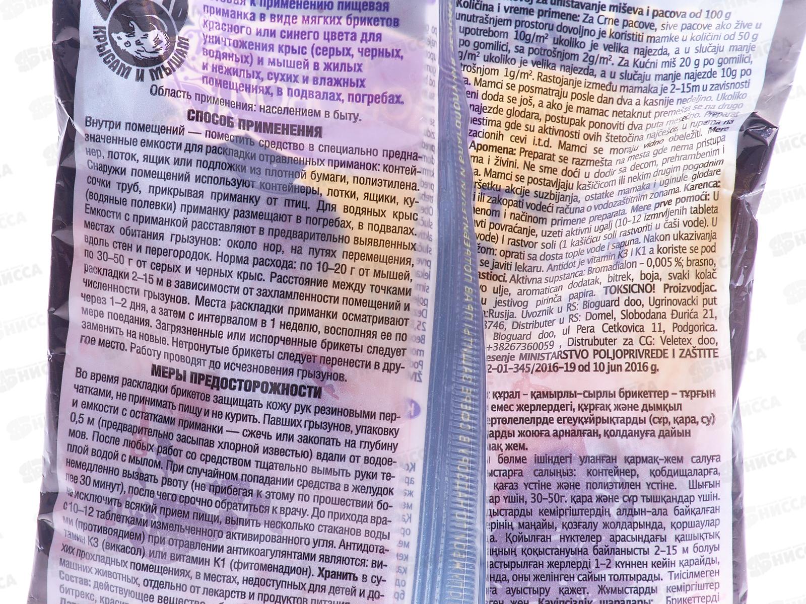 Состав: бромадиолон 0,005%, битрекс, краситель, пищевые наполнители