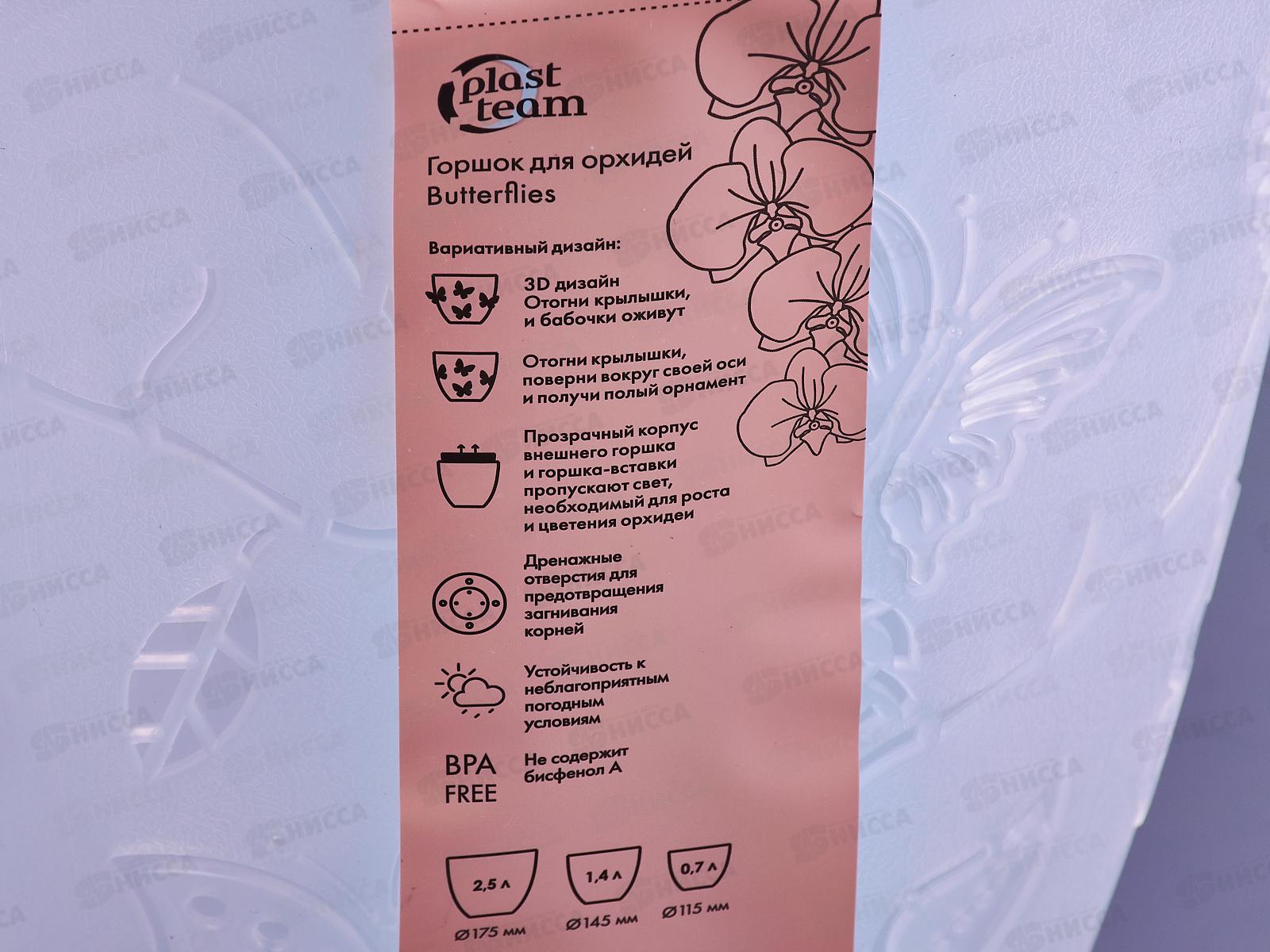 Горшок для цветов "Butterflies" D175мм 2,5л прозрачный РТ101910000