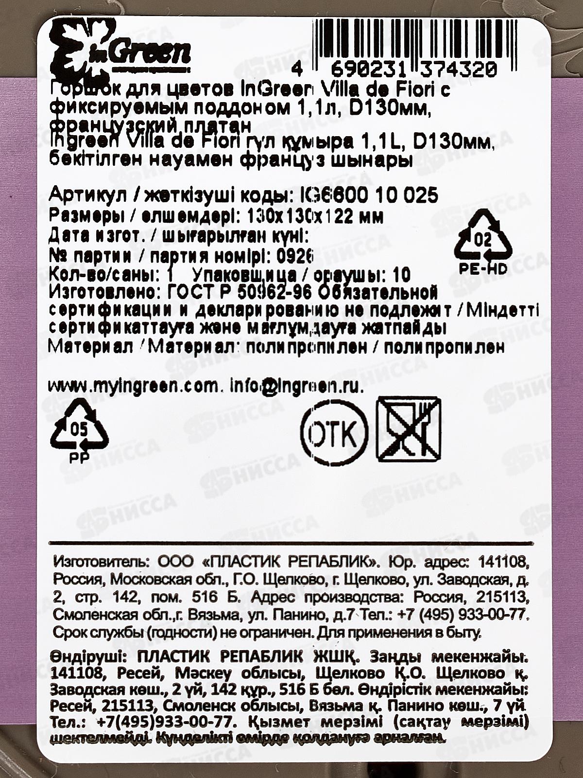Горшок д/цв. "InGreen Villa de Fiori" 1,1л франц плат IG660010025 *10
