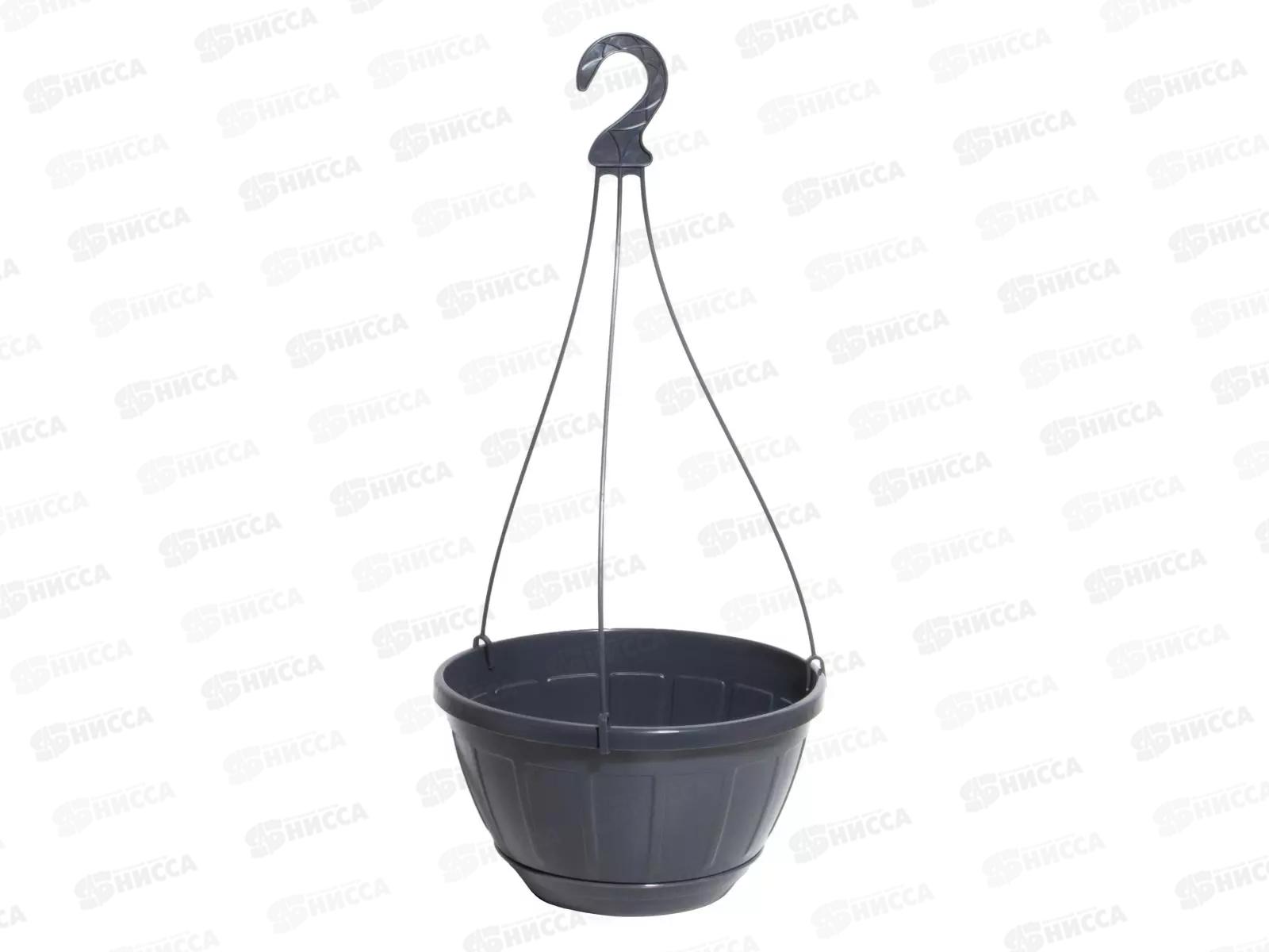 Код:601718; Горшок (Кашпо) подвесной для цветов 4,0л Графитовый с поддоном ИНТ