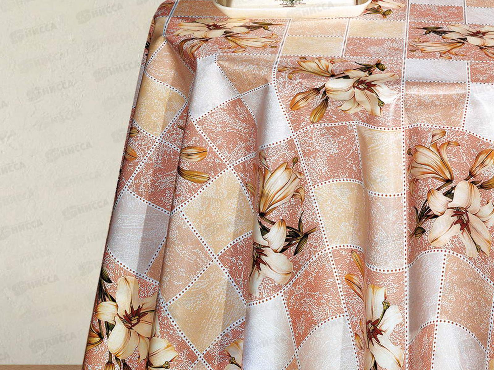 Клеенка на неткан основе ДЕКОРАМА 1,4*20м 118В лилии в беж клетке