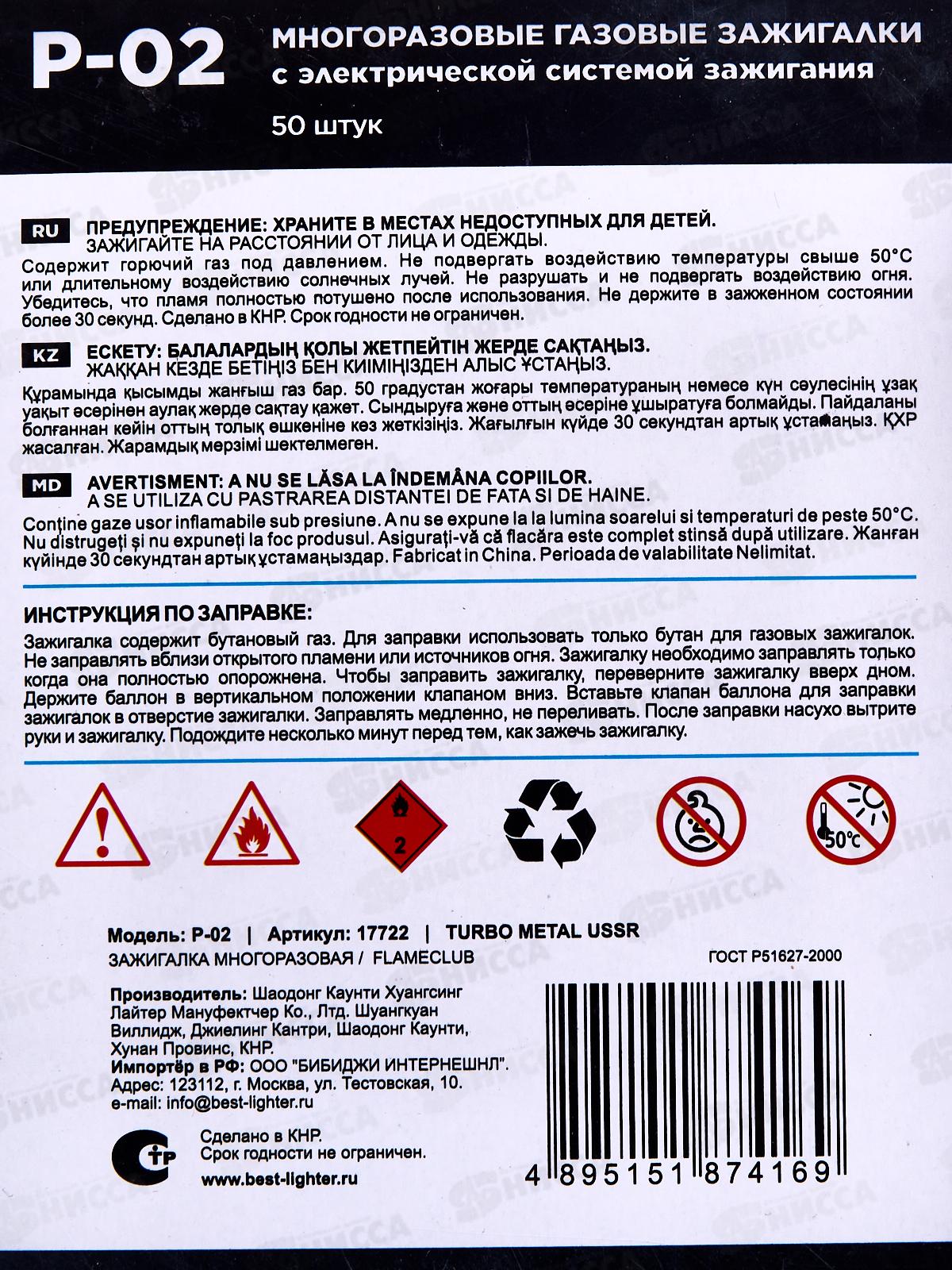 Зажигалка Flameclub P-03 TURBO METAL USSR 17722 *50