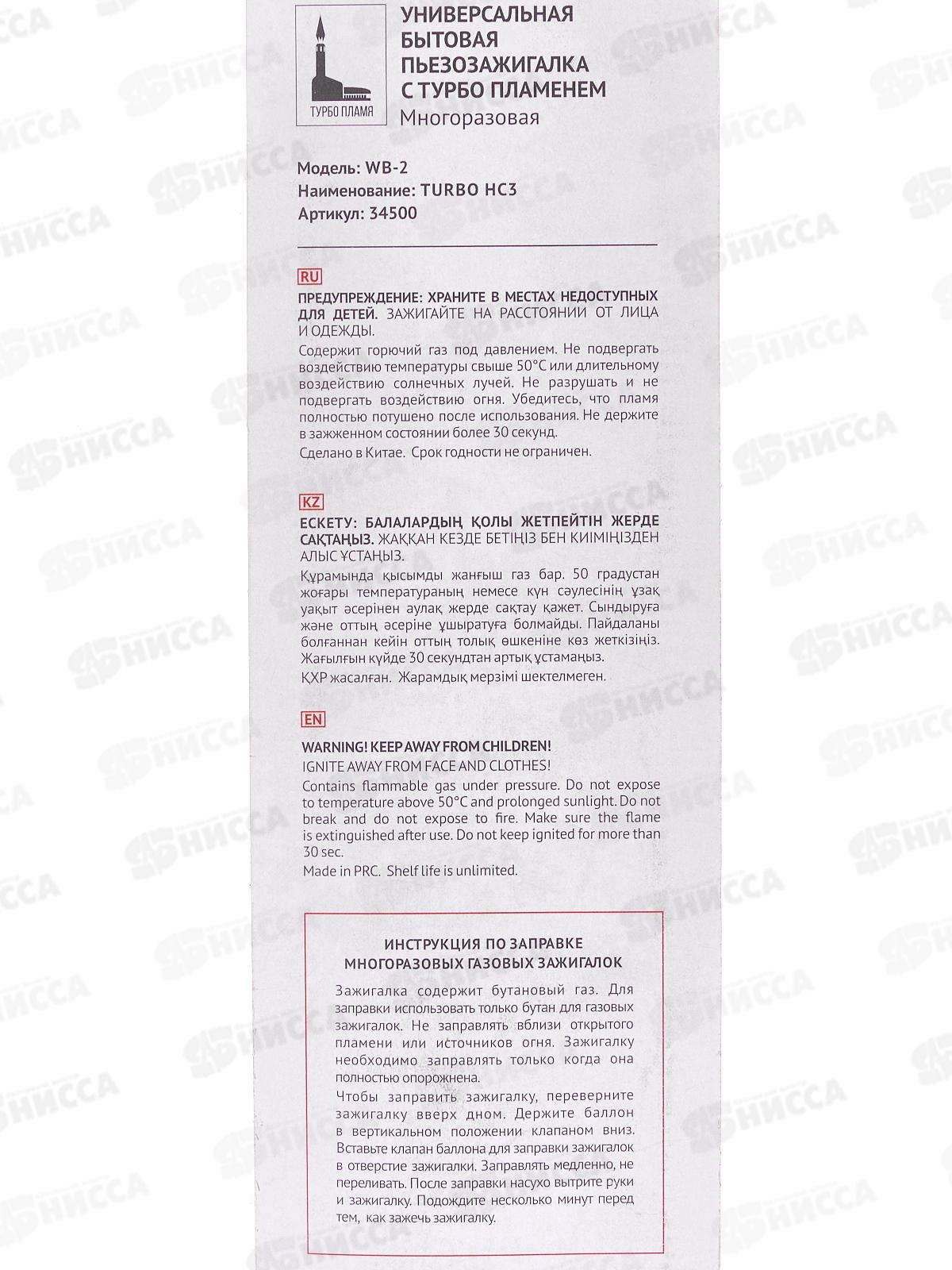 Пьезозажигалка Wisen WВ-2 TURBO HC-3 34500 *144