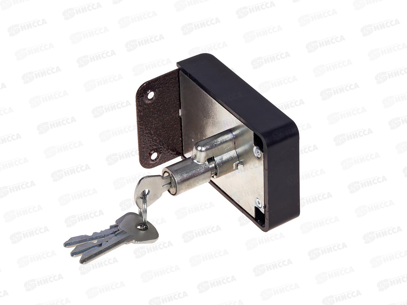 Замок накладной цилиндровый с вертушкой. Предназначен для установки на деревянные двери. Засов из двух цилиндрических ригелей диаметром 14 мм, с максимальным вылетом 25 мм. Удаление ключевого отверстия - 60 мм. Габариты замка - 100х75х24,5 мм. Комплектация - 4 ключей, запорная планка, накладка. Закрывание и открывание замка изнутри производится ручкой, снаружи ключом. Корпус из ударопрочного пластика со стальной пластиной.