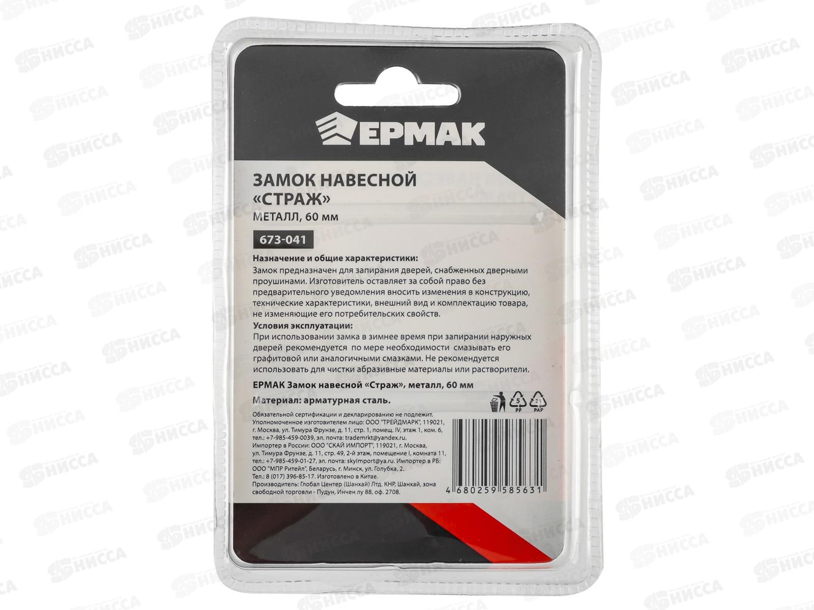 Замок навесной ЕРМАК "Страж" металл 60мм 673-041 г