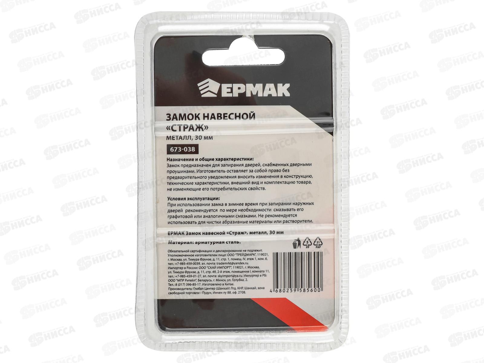 Замок навесной ЕРМАК 30" страж, металл 673-038 г