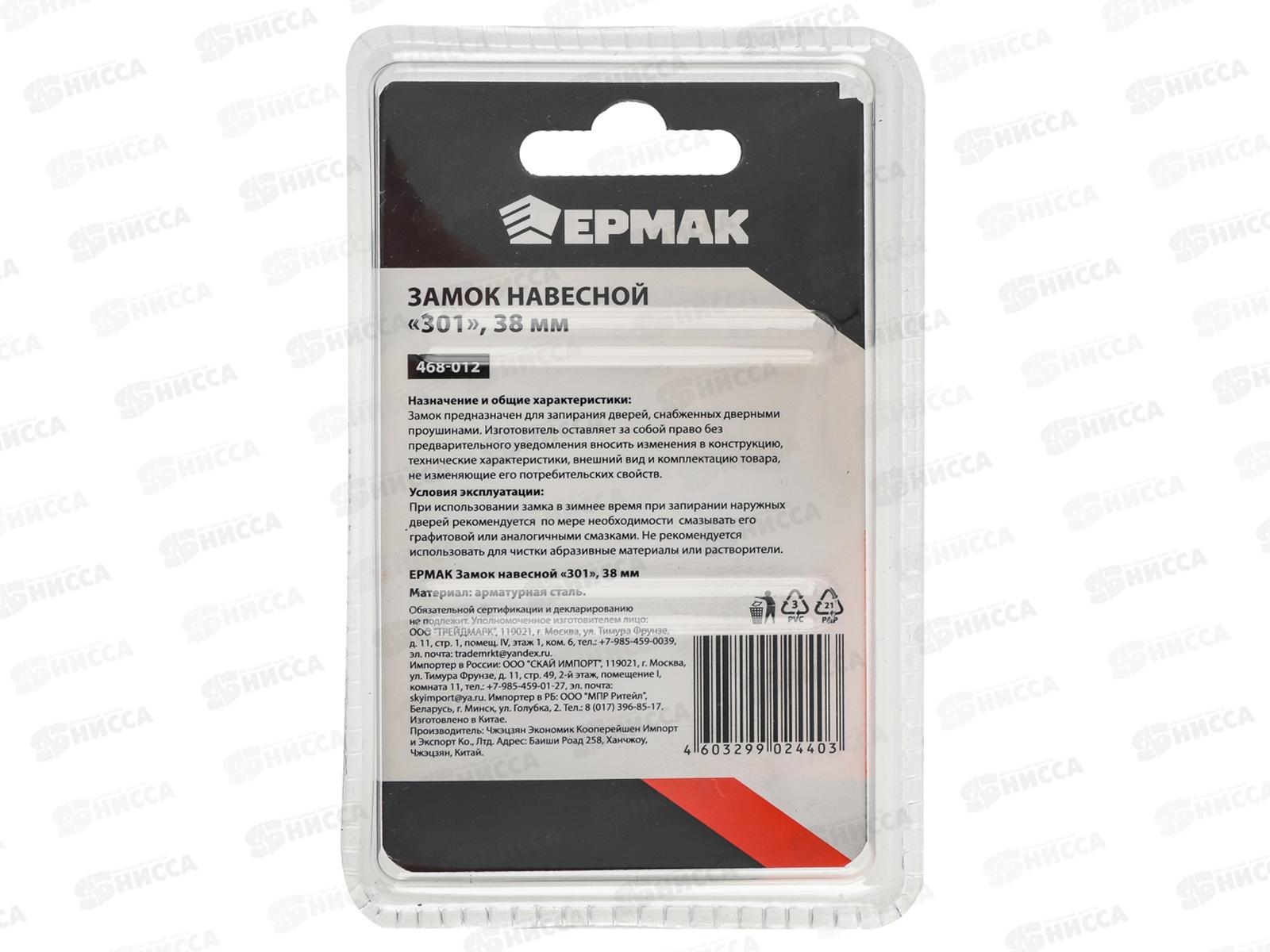 Замок навесной ЕРМАК 38мм серый 364 г 468-012