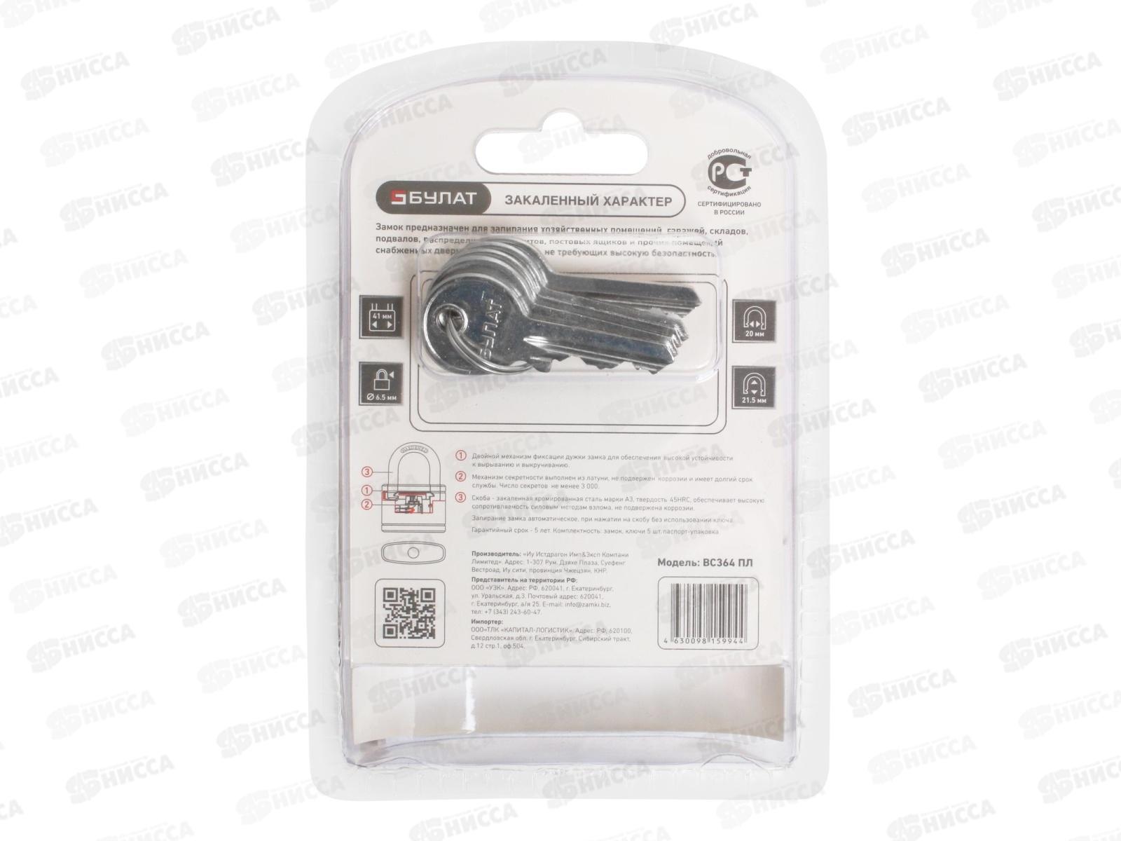 Замок навесной БУЛАТ чугунный в пластике ВС 364 ПЛ 5кл *6 14 510