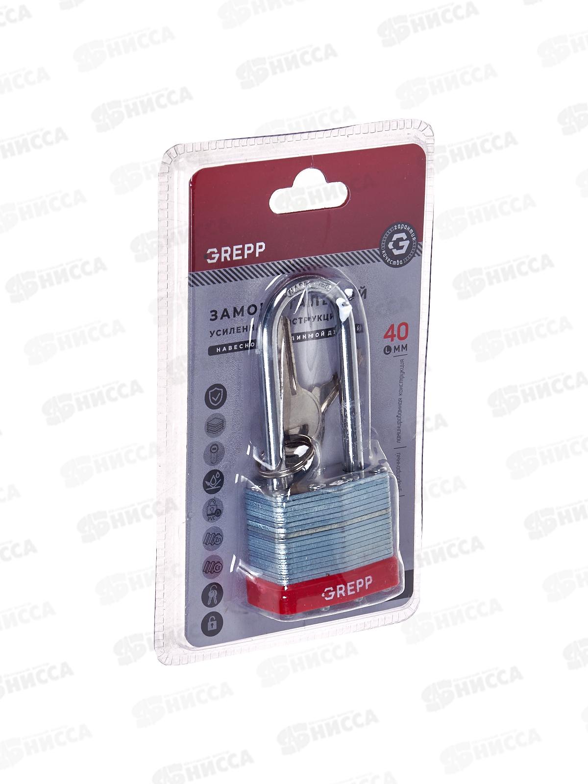 Замок навесной "GREPP" сталь 40мм с длинной душкой 401-040 *12/72