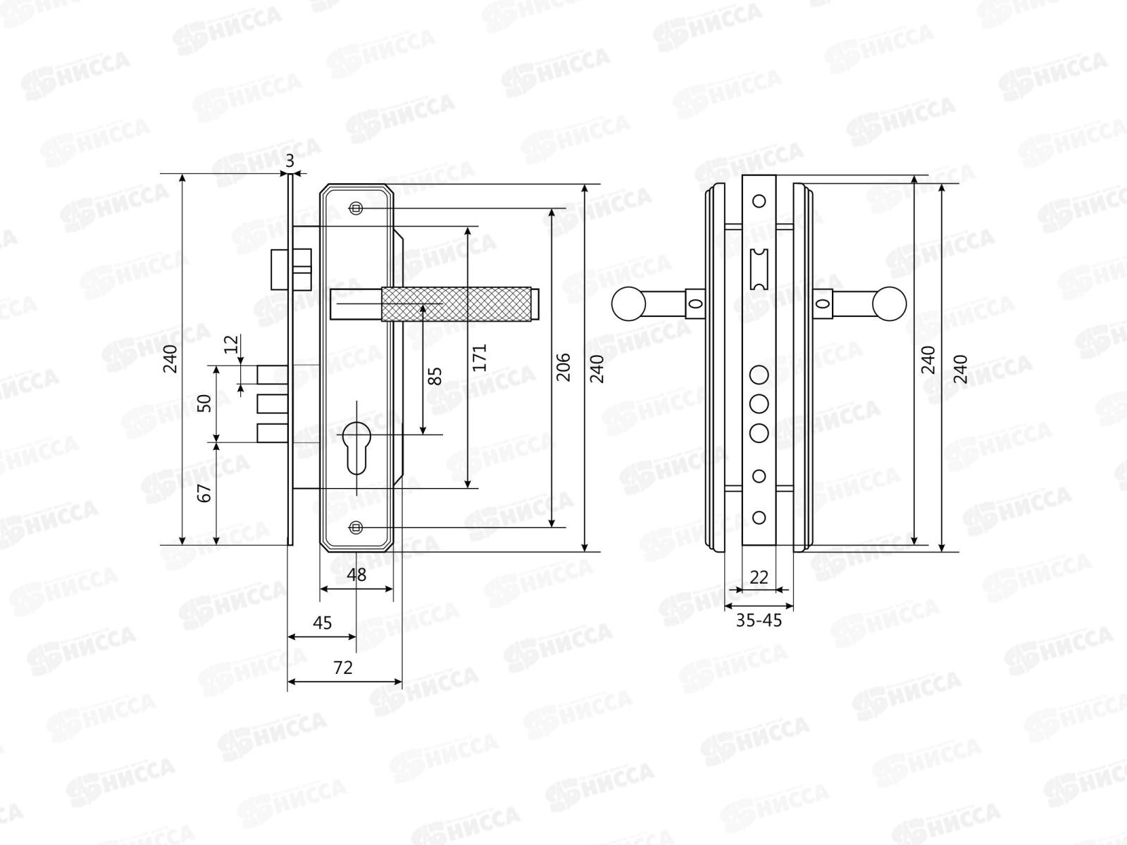 Замок врезной Булат ЗВ4-3.02.08 Ферона мат никель 5п кл с/руч 003 *12