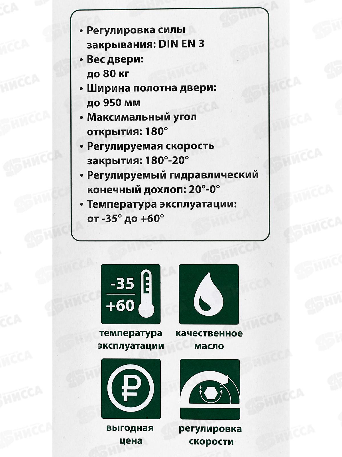 Рабочий ресурс до 500 тыс рабочих циклов. Класс EN3. В комплекте 2 вида крепежа – шурупы для установки.
