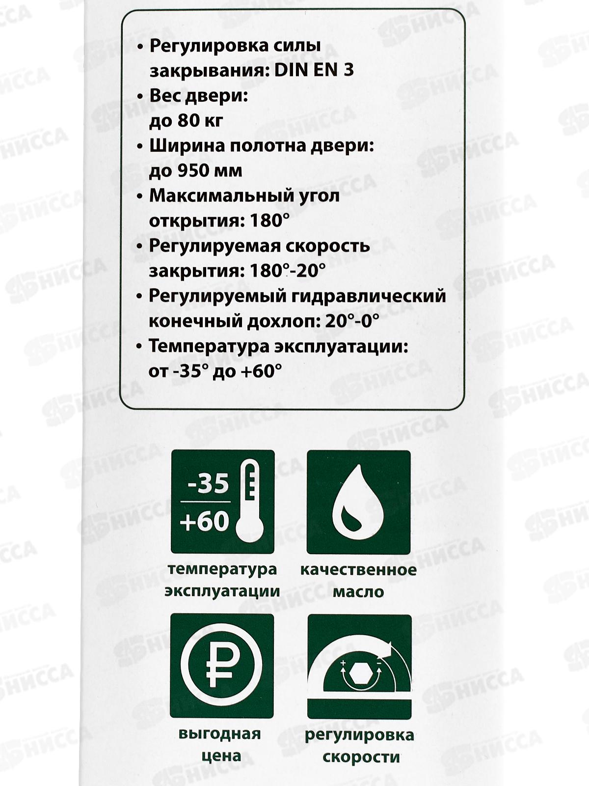 Рабочий ресурс до 500 тыс рабочих циклов. Класс EN3. В комплекте 2 вида крепежа – шурупы для установки.