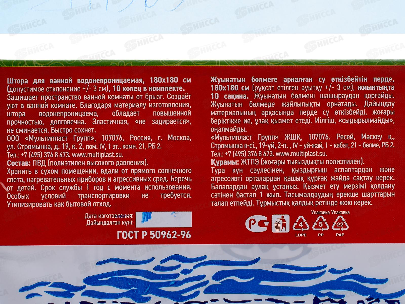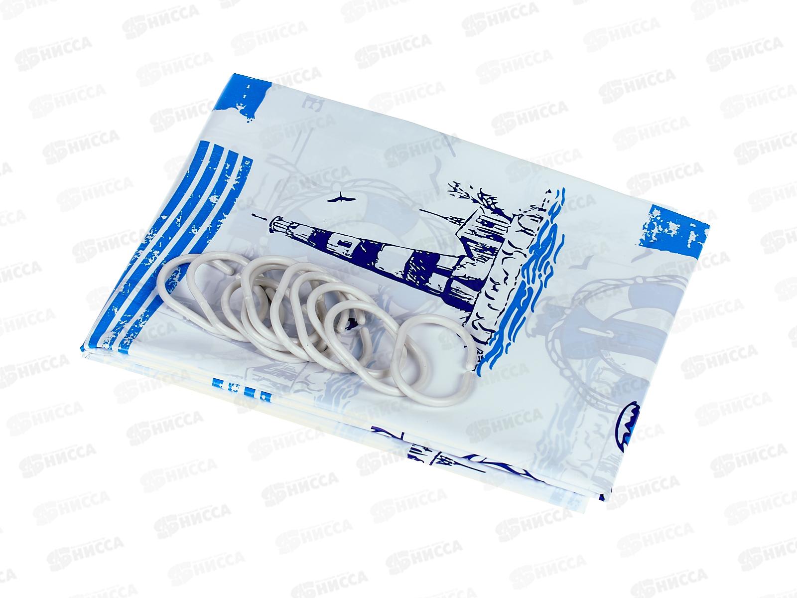 Штора в ванну полиэтиленовая 180*180 Корабли *40