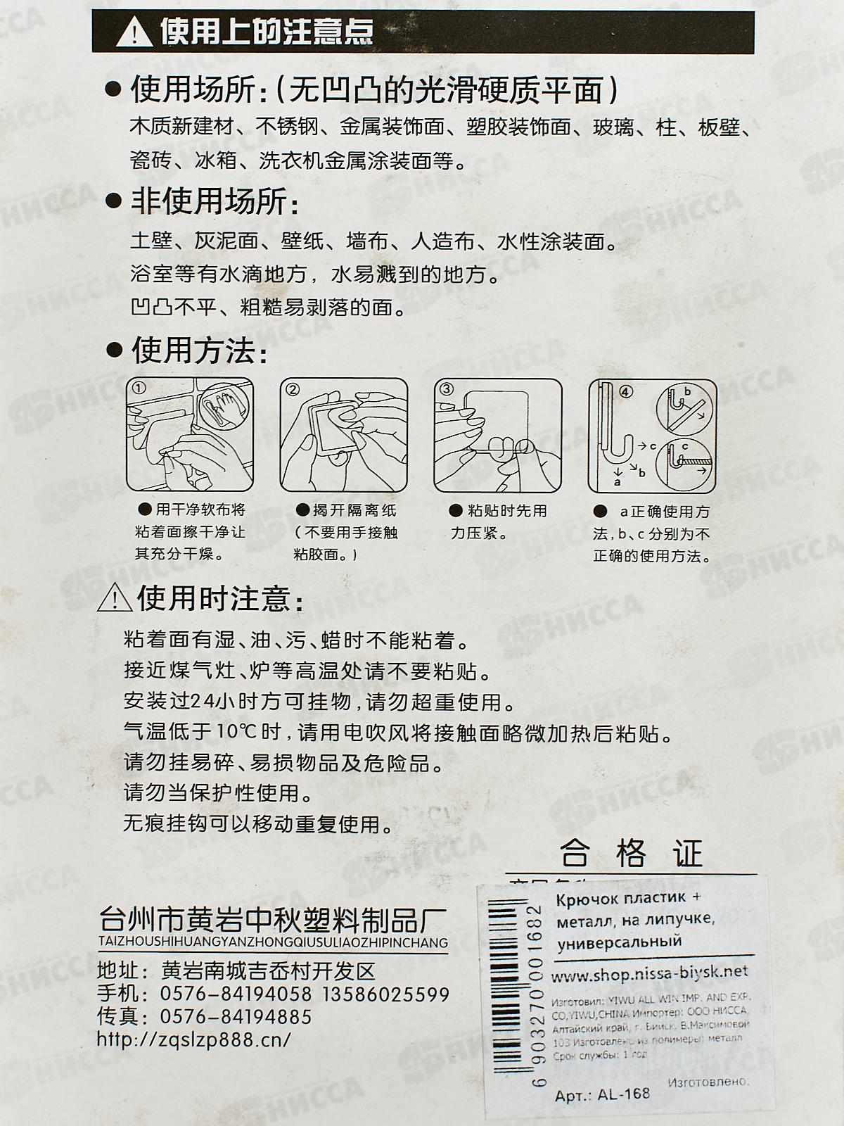 Крючки для полотенец на липучке, AL-168 *500