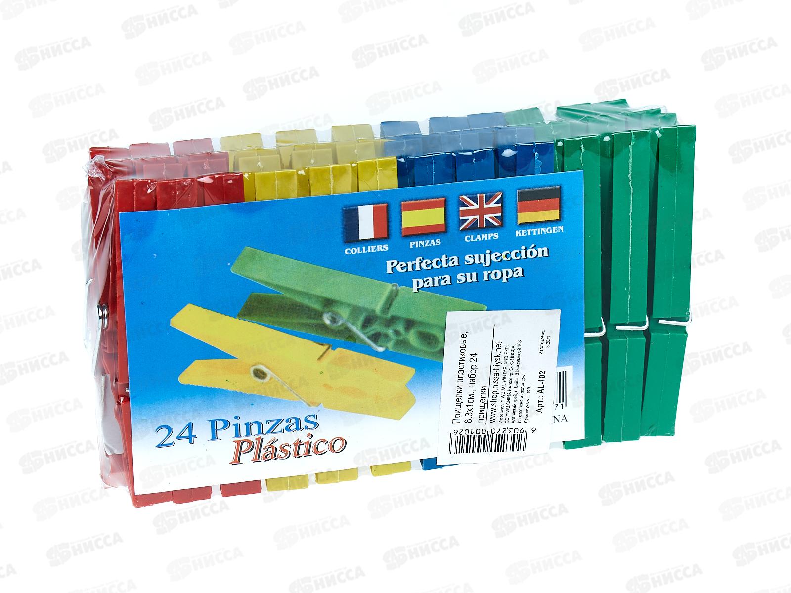 Прищепки из полимеров, набор 24шт 8.3х1 см., AL-102 *144