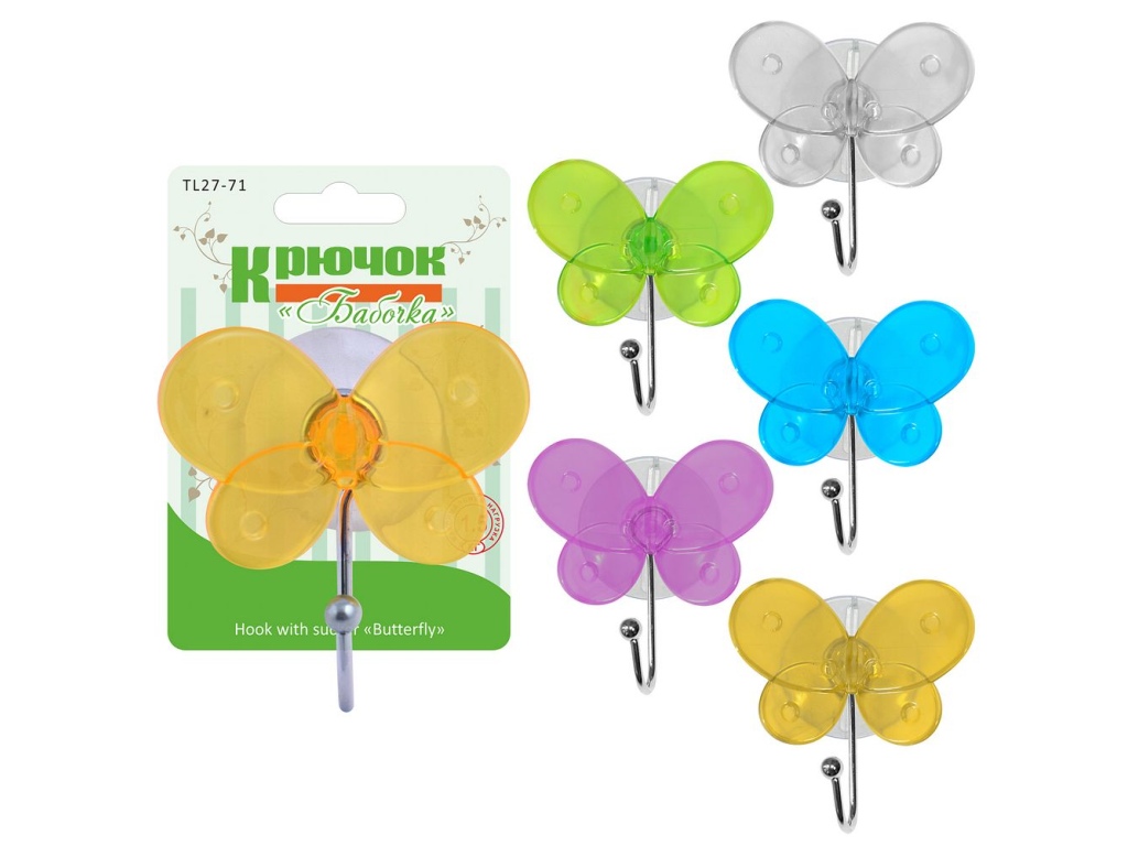 Крючок "Бабочка" (на присоске) 4цвета TL27-71 *12