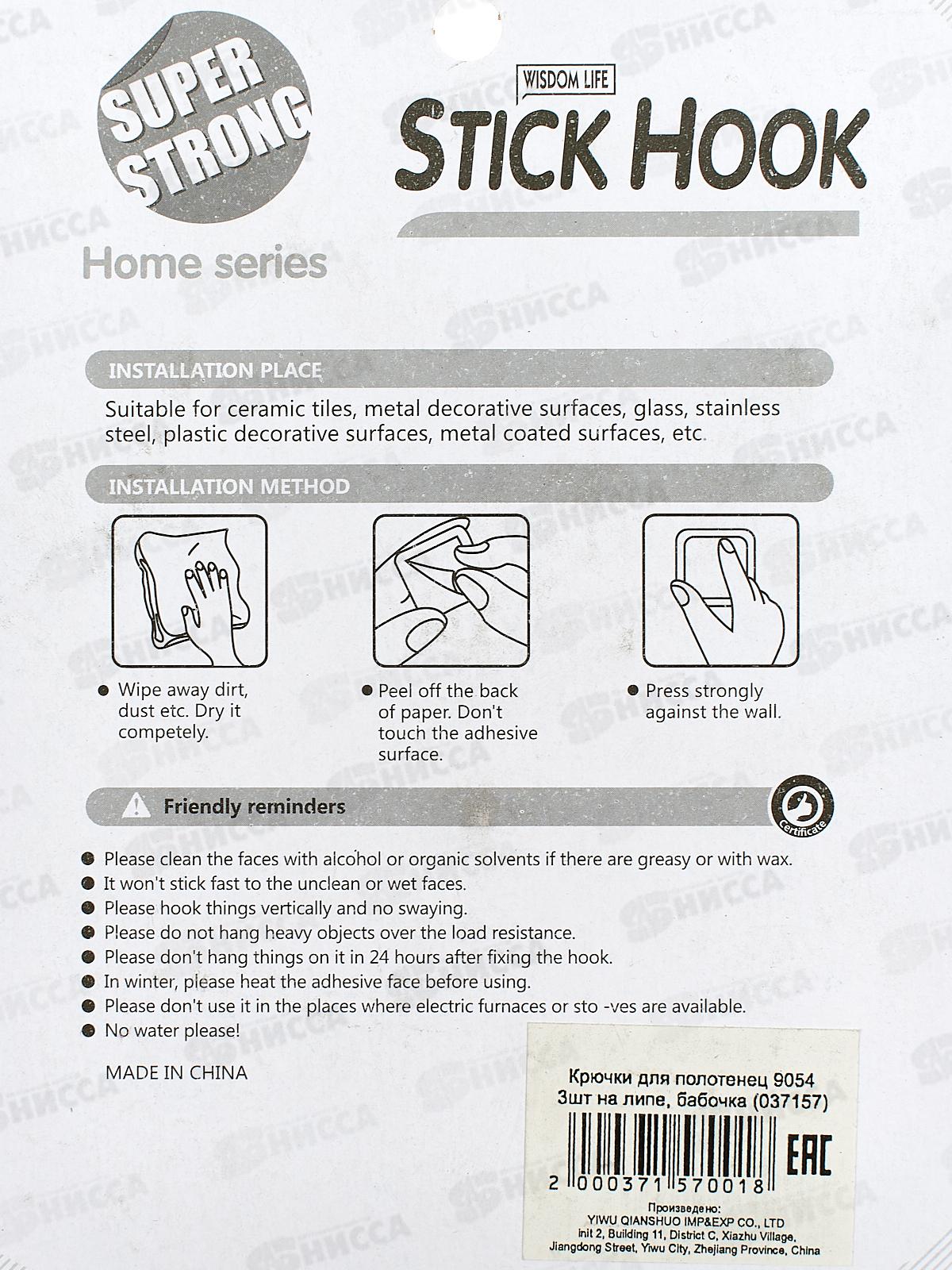 Крючки для полотенец 9054 3шт на липе бабочка (037157) Ж