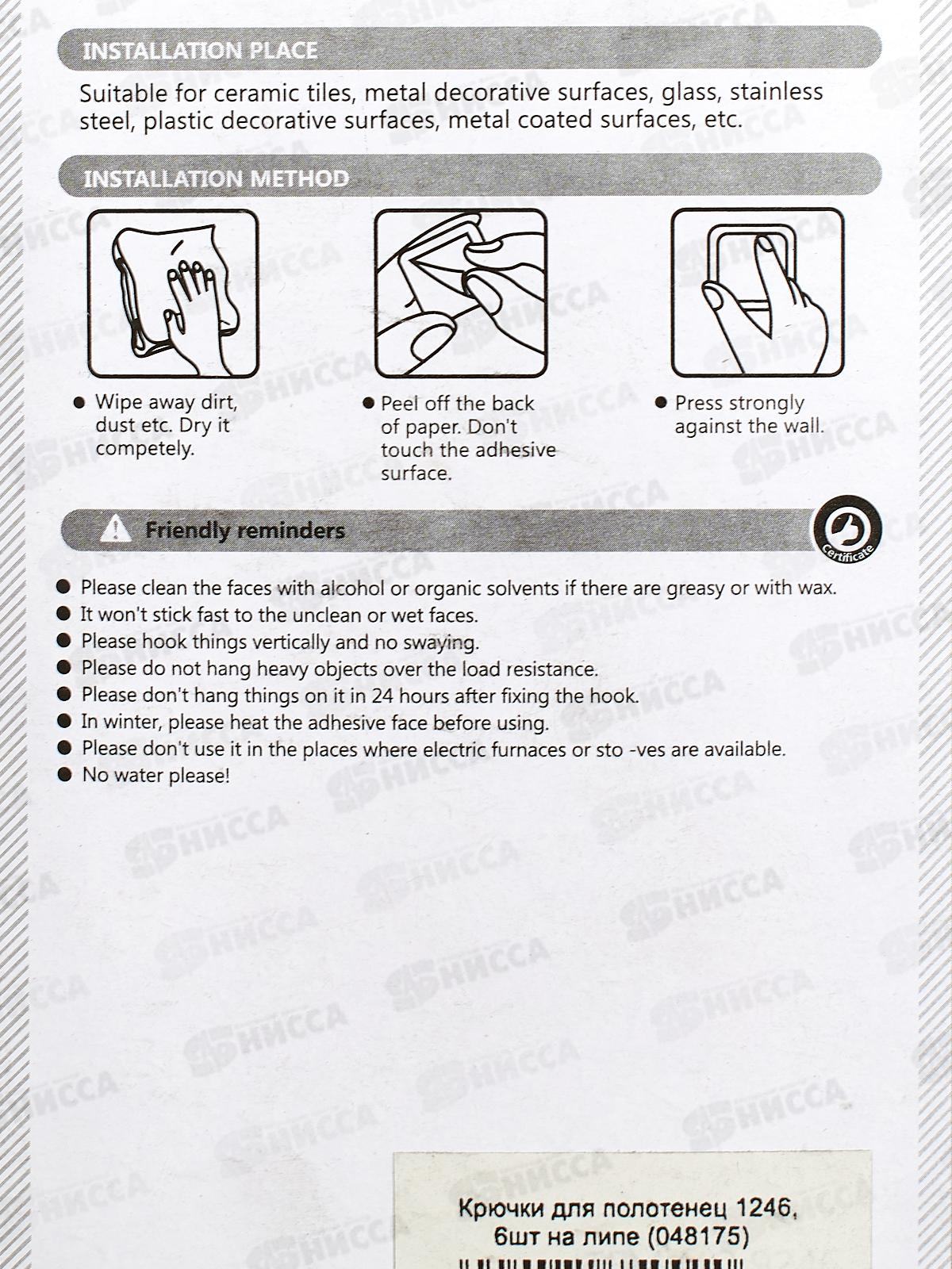 Крючки для полотенец 1246 6шт на липе (048175) Ж