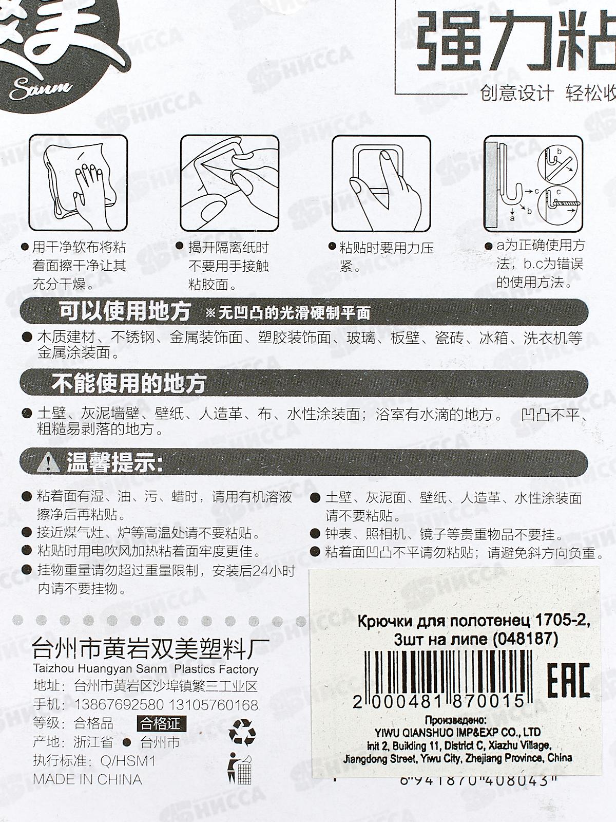 Крючки для полотенец 1705-2 3шт на липе (048187) Ж