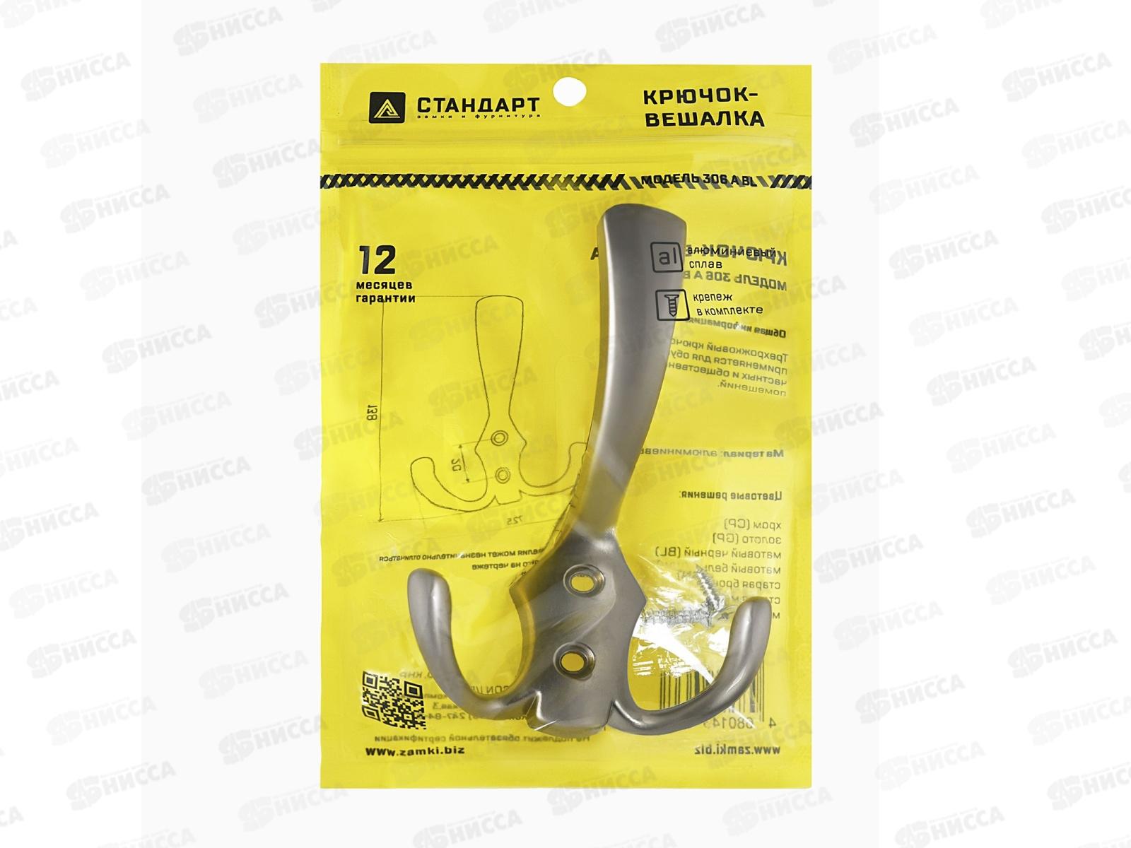 Крючок-вешалка Стандарт 306 A SN мат никель европакет *40 846