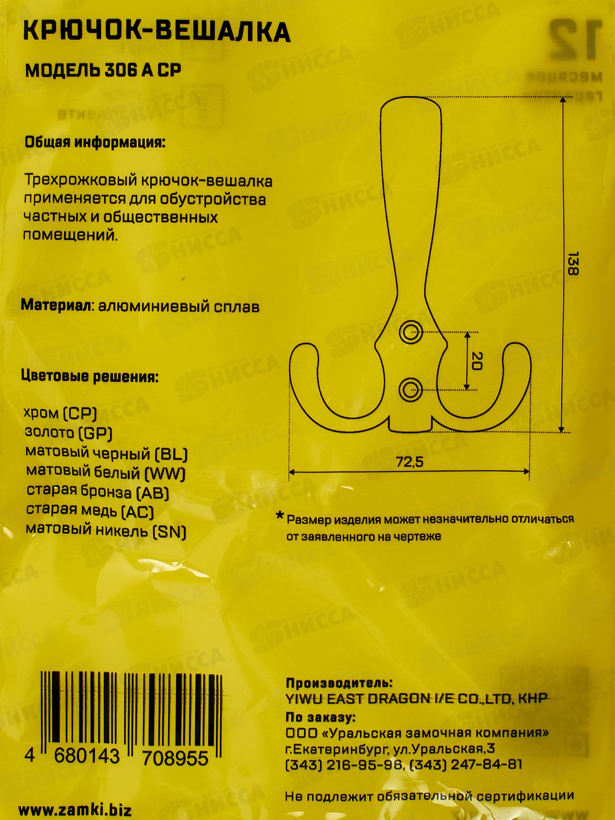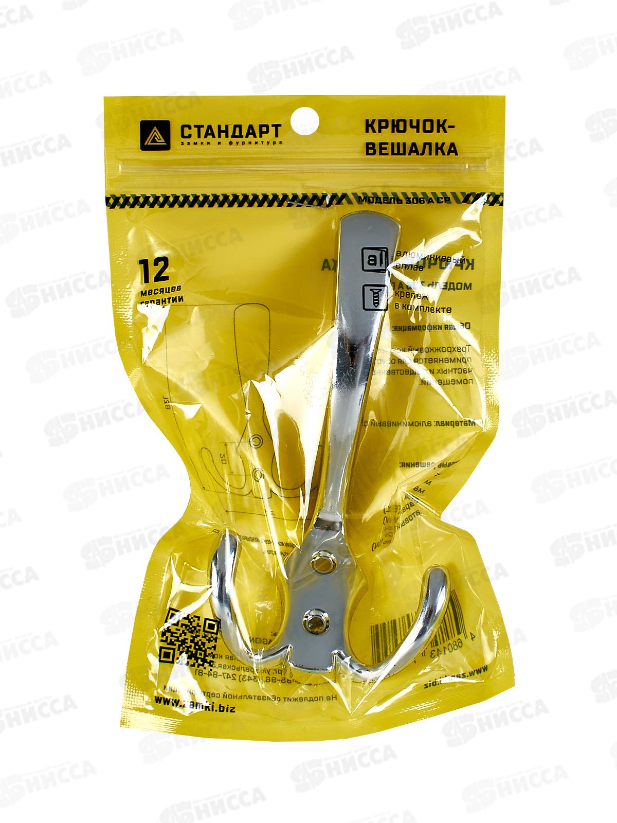 Крючок-вешалка СТАНДАРТ 306 А CP хром ЕВРОПАКЕТ 15844