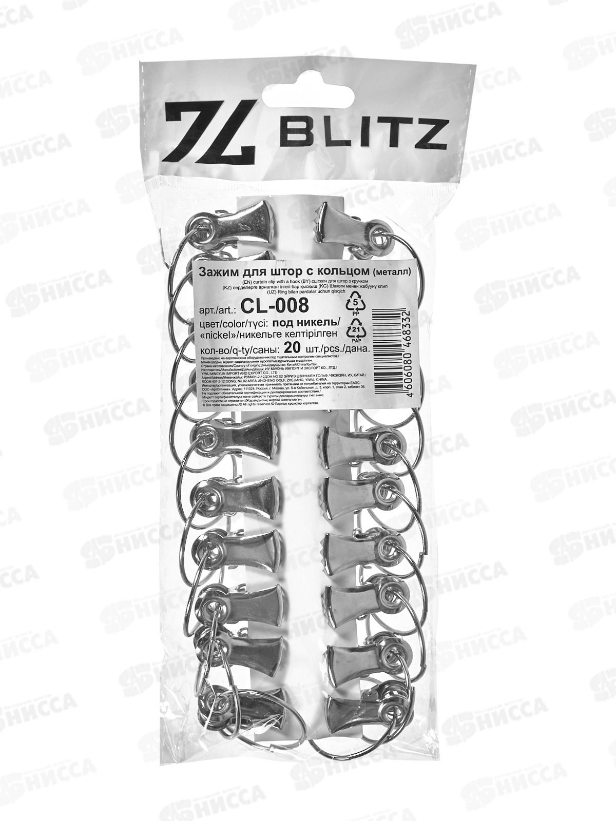 Зажим для штор металл с кольцом CL-008 (20шт) под никель