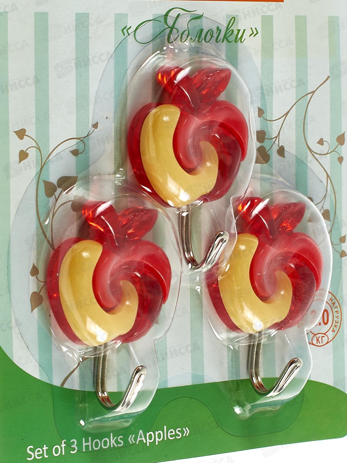 Набор крючков 3 штуки "Яблочки" 4 цвета, PY27-149 *144