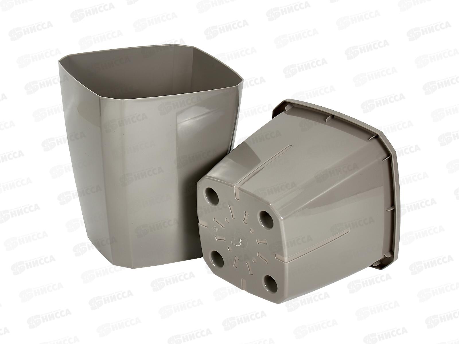Кашпо Лаунж 2,4л квадратное с дренажной вставкой Пыльно-серое С371Псер