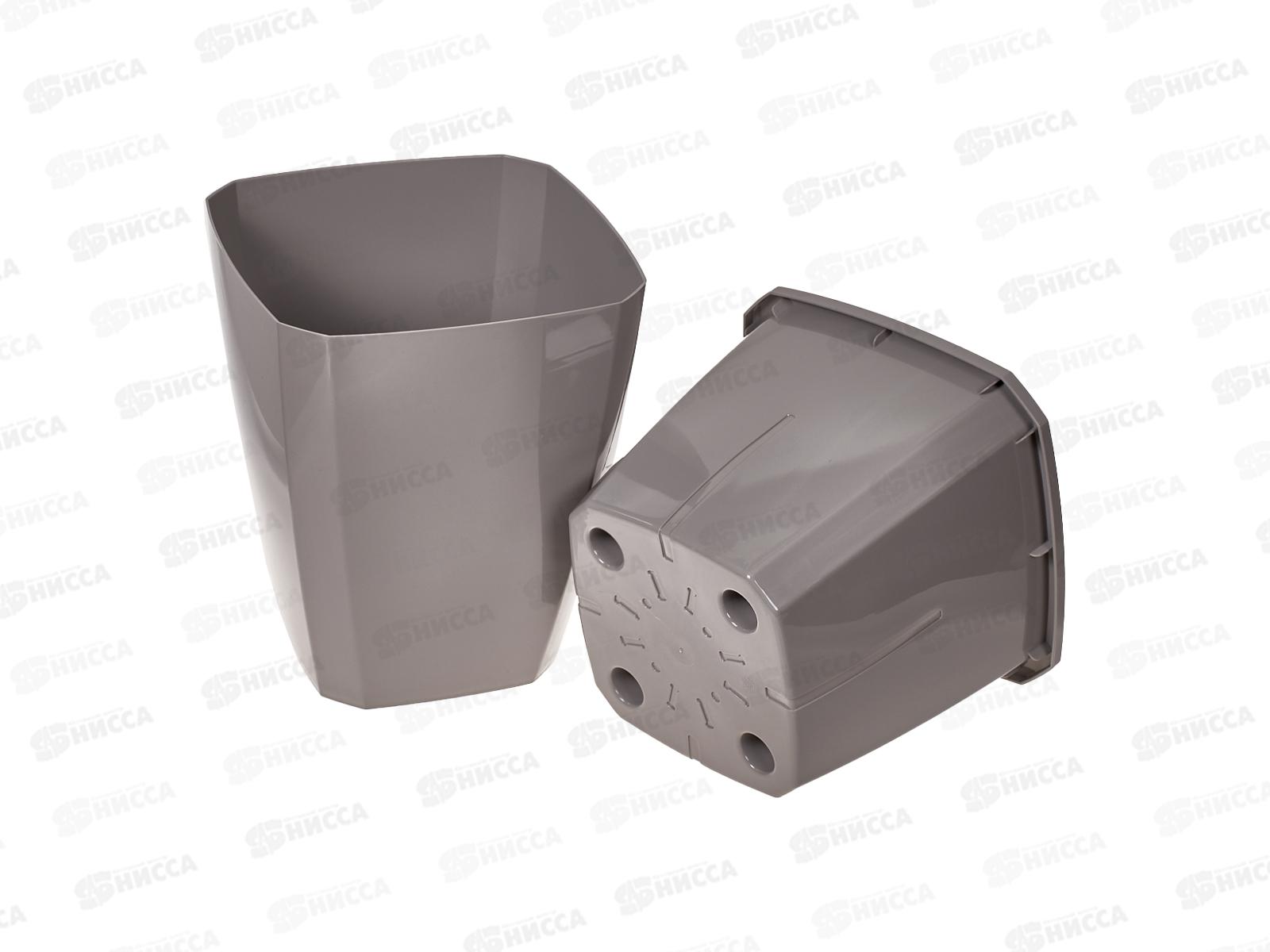 Кашпо Лаунж 4/2,8л квадратное с дренажной вставкой Пыльно-серое С372Псер