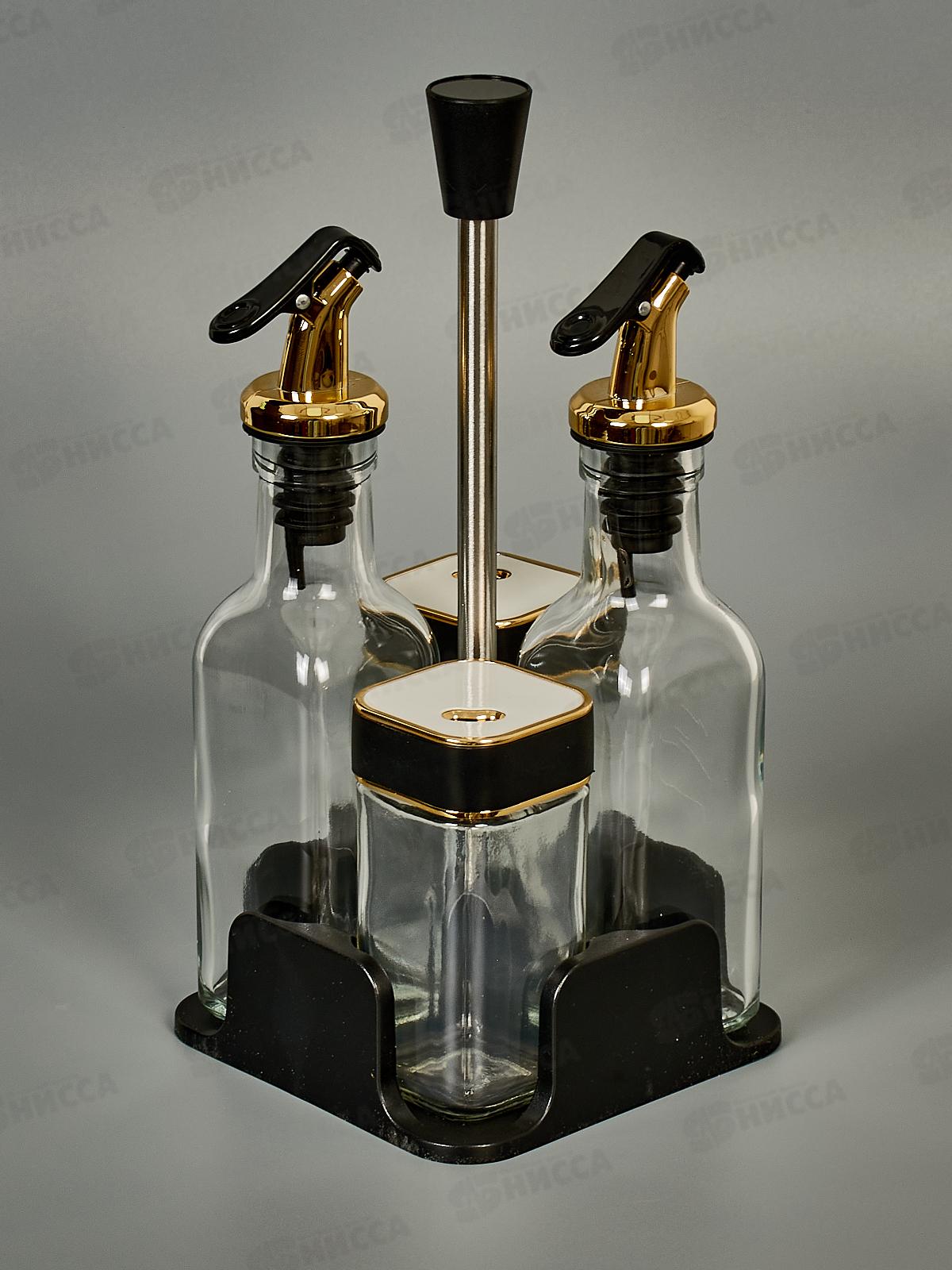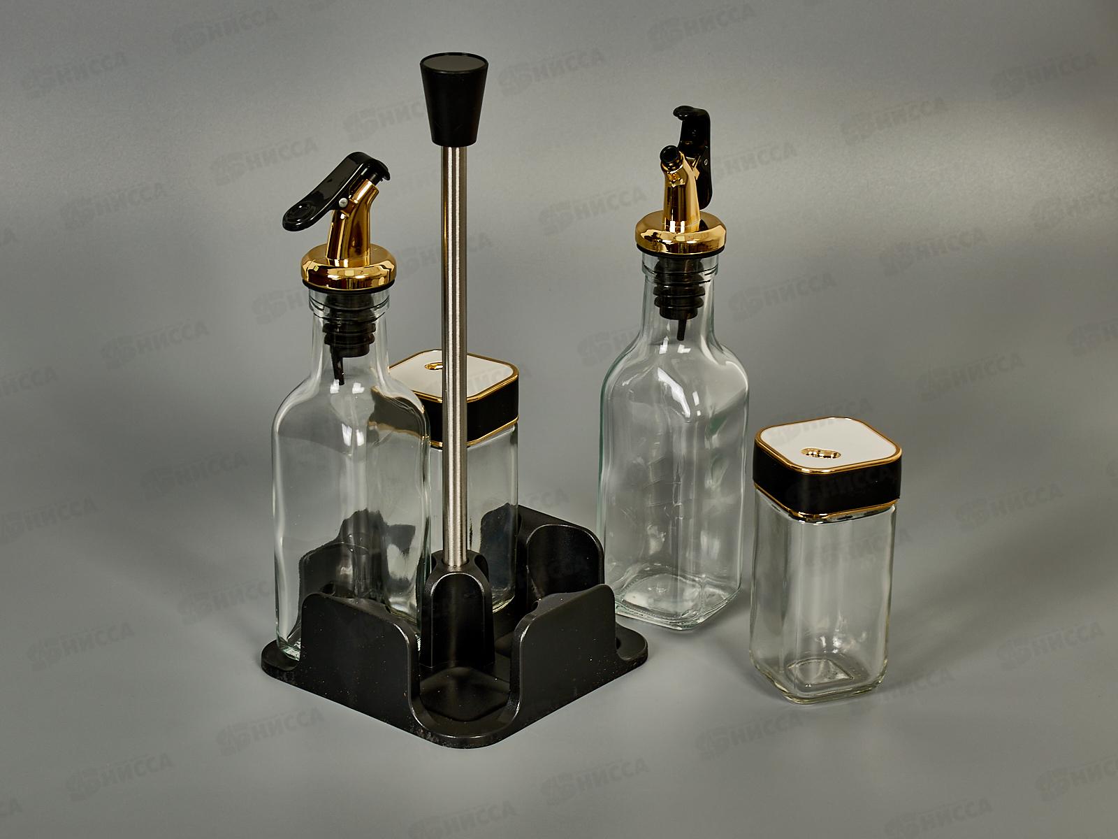 Удобный набор состоит из четырех предметов: две бутылки под масла, бальзамик, соевый соус и две емкости для соли, перца или специй. Такой функциональный набор располагается на удобной подставке, оснащенной ручкой, за которую его удобно перемещать в любое место. В наборе: бутылка для масла - 1 шт (180 мл), бутылка для уксуса - 1 шт (180 мл), ёмкость для специй - 1 шт (120 мл), ёмкость для специй - 1 шт (120 мл).