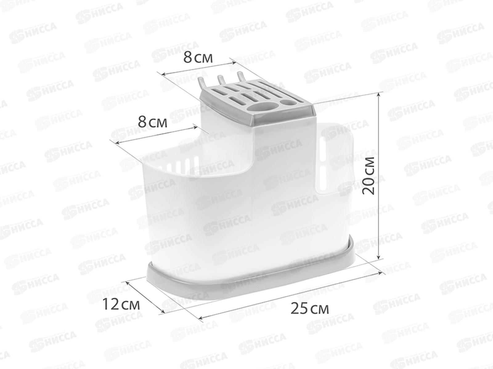 Органайзер позволяет компактно разложить кухонные приборы и аксессуары для сушки. Имеет два отделения разной высоты для столовых приборов, отверстия для сушки ножей, лопаток, поварёшек, а также крючки для сушки ситечка, ножа для овощей и другой кухонной утвари. Поддон и крышка закреплены на защёлки, но легко снимаются для мытья. Прочный, практичный и вместительный аксессуар для кухни прослужит хозяйке многие годы.