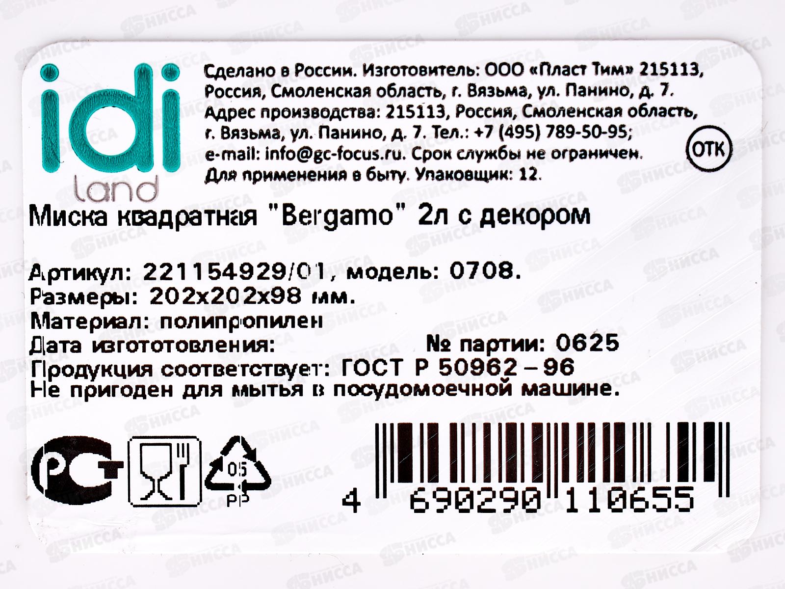 Квадратная стильная миска объёмом 2л с декором подойдёт для сервировки салатов, гарниров и многого другого. IML-декор вплавляется в изделие на этапе литья, поэтому он не стирается и долго радует глаз. Миски выпускаются в двух объёмах - 2л и 4л, которые удобно вкладываются друг в друга для компактного хранения. Для производства используется безопасный полипропилен, который подходит для СВЧ и не содержит бисфенола А.